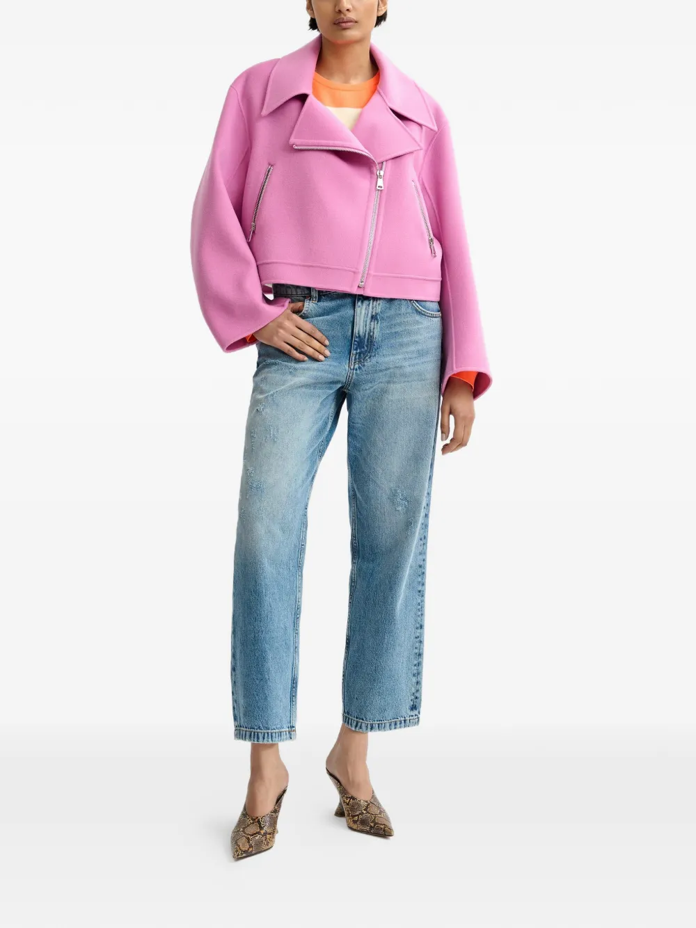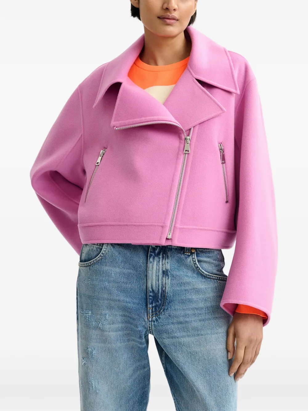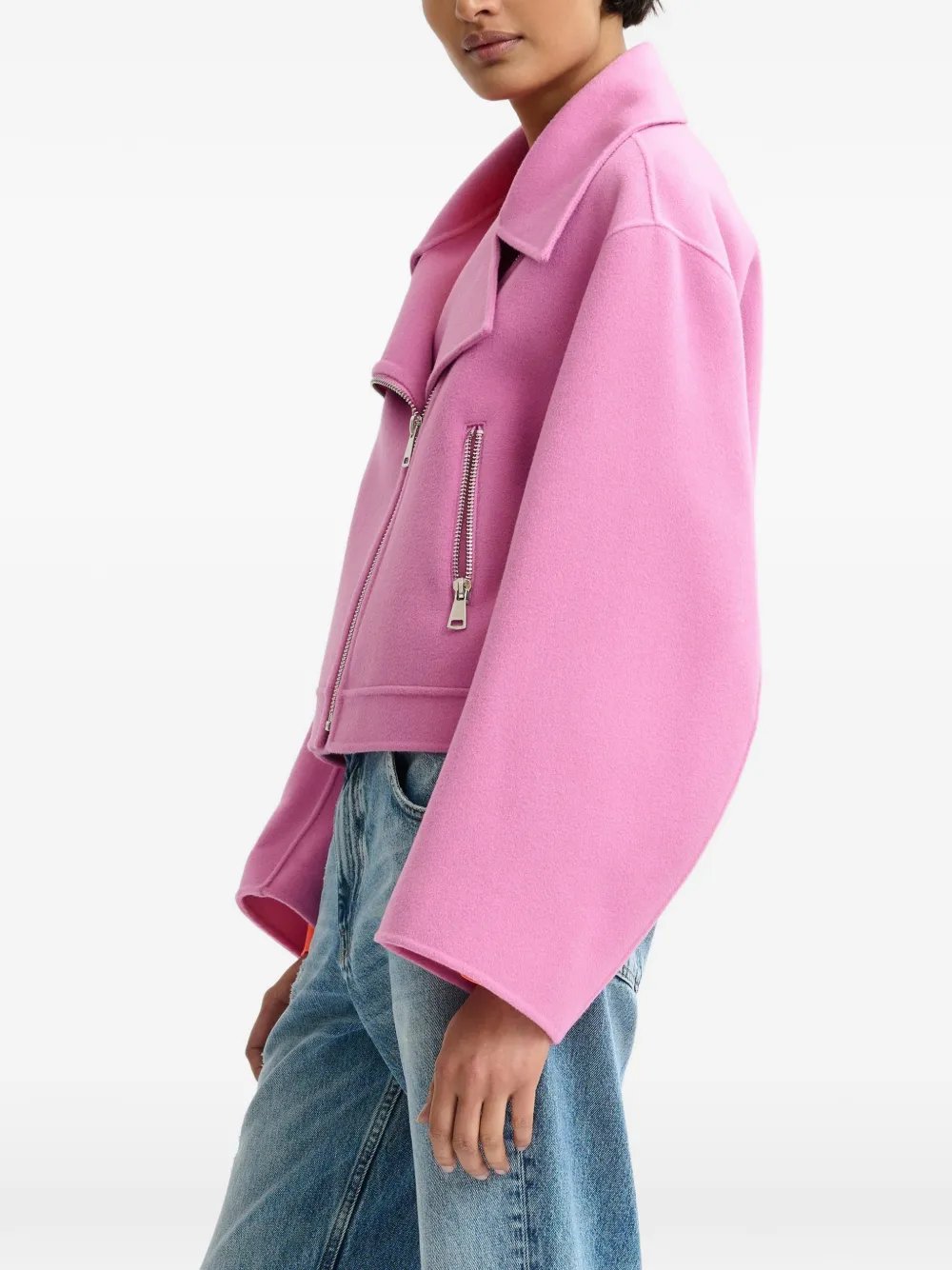 Розовая диагональная застежка-молния, карманы на молнии, заниженная линия плеч