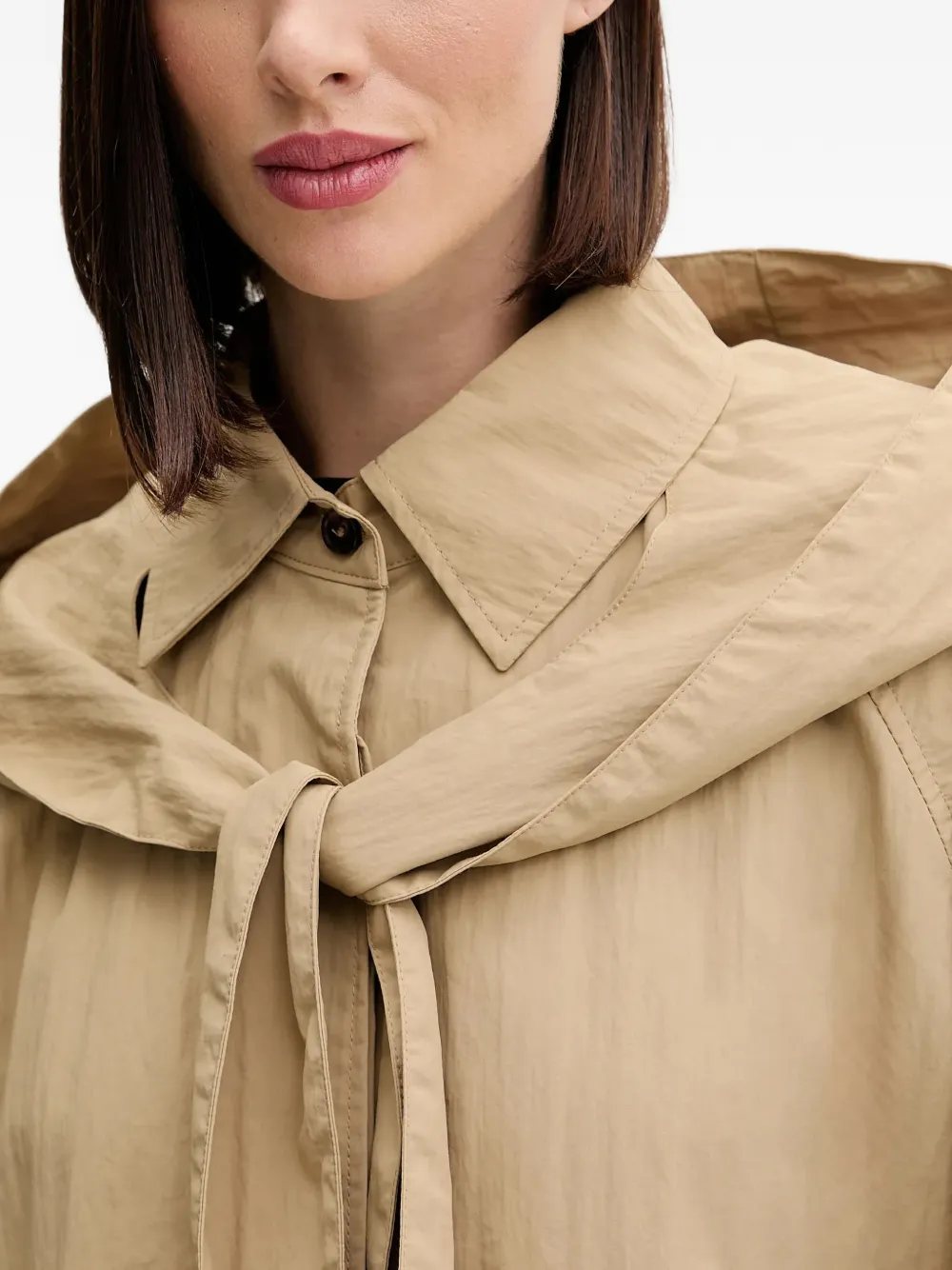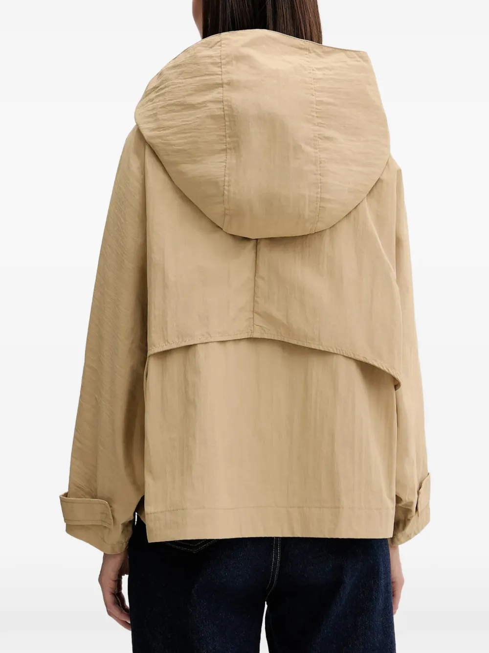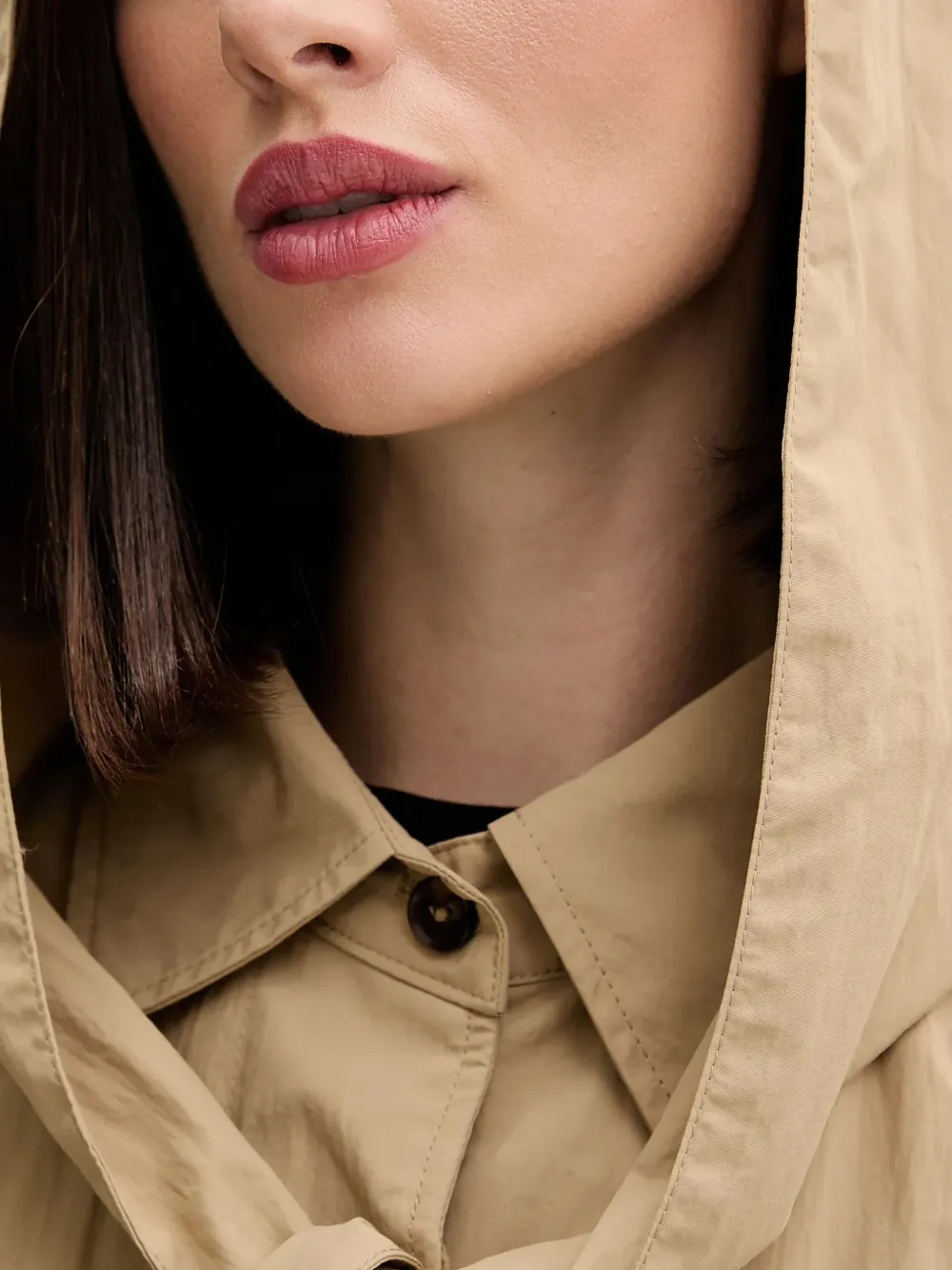 Светло-коричневый, съемный капюшон, застежка на пуговицы спереди, длинные рукава, отложные манжеты, прорезные карманы