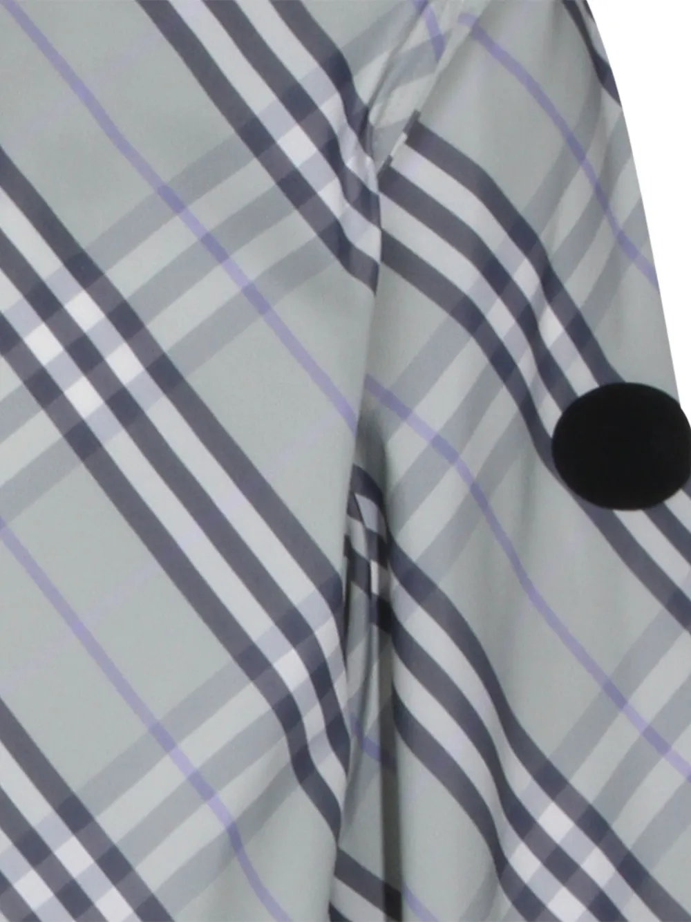 Светло-серый цвет, клетчатый узор, застежка-молния, длинные рукава, круглая нашивка с логотипом