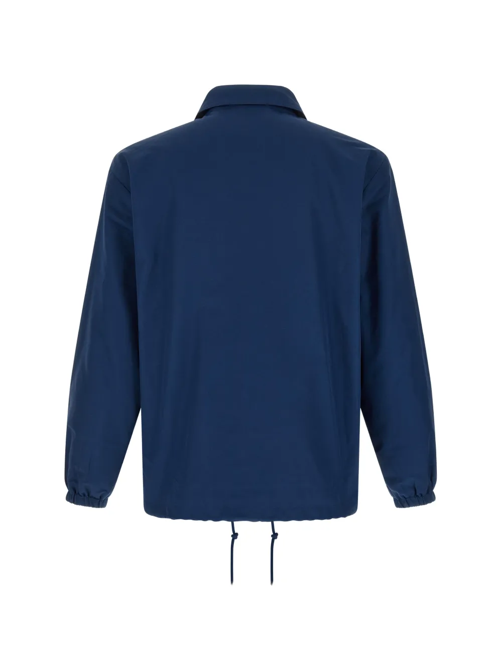 Синий рубашечный воротник, логотипная нашивка спереди, застежка на кнопки, длинные рукава, эластичные манжеты