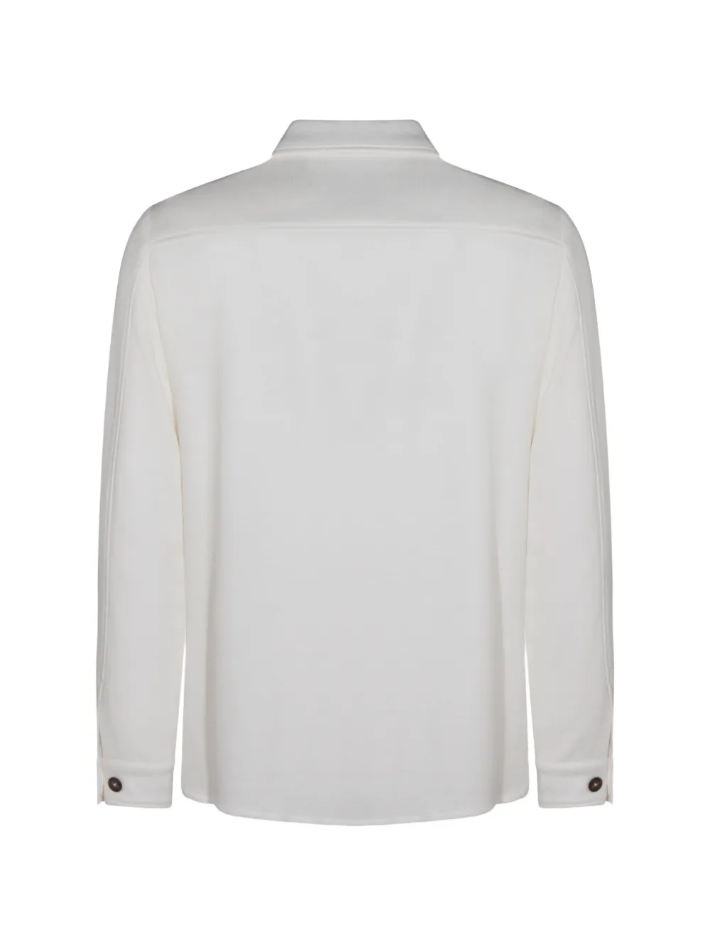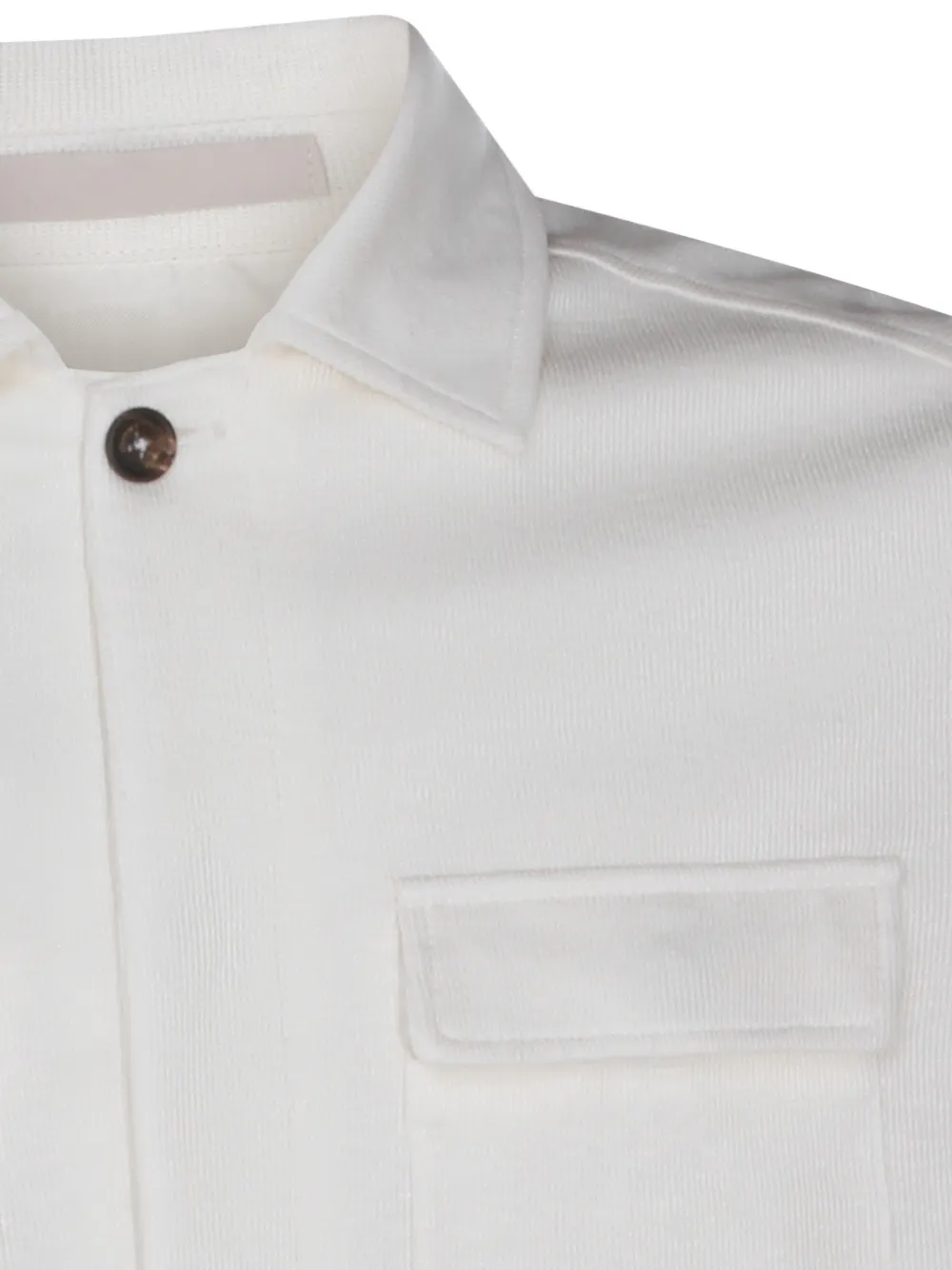 Белый цвет, нагрудные накладные карманы, застежка на пуговицы, манжеты на пуговицах, отложной воротник