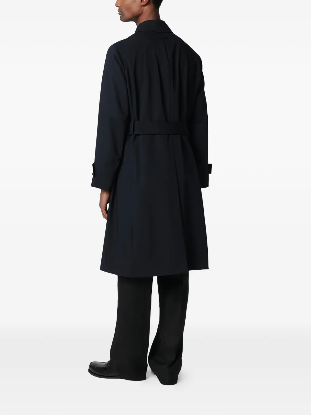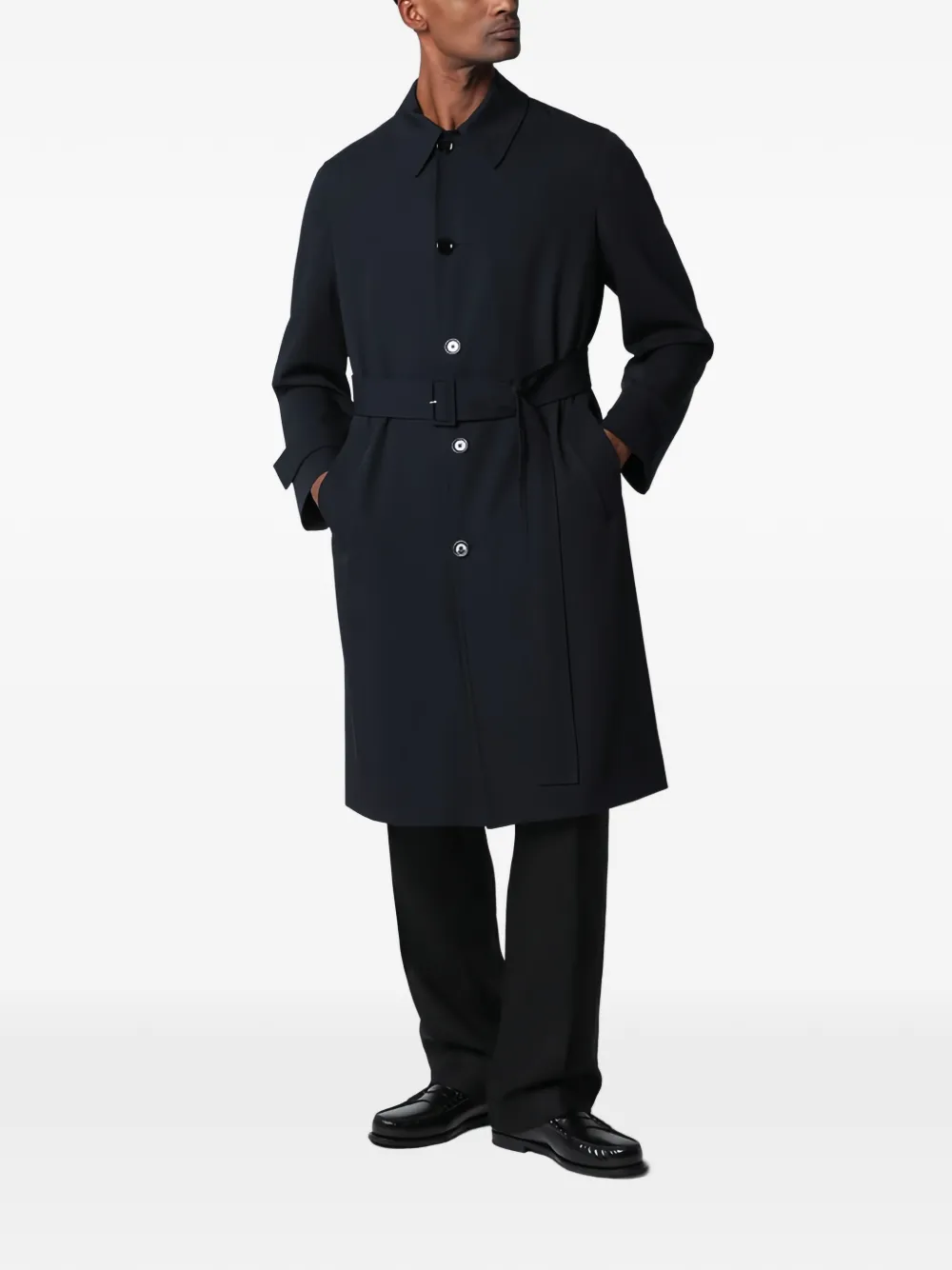 Синий ремень, застегивается на пуговицы, манжеты на пуговицах, карманы