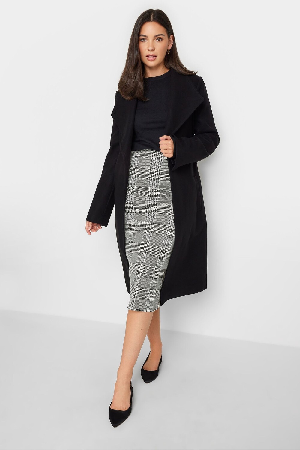 Юбка миди в однотонную клетку Long Tall Sally, черный 2 940₽