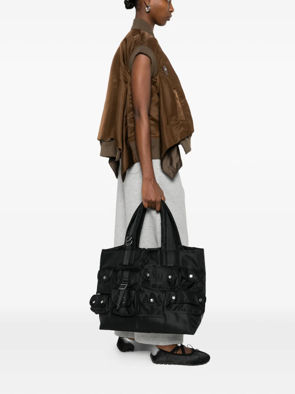 Сумка-тоут с карманом Sacai, черный 92 110₽