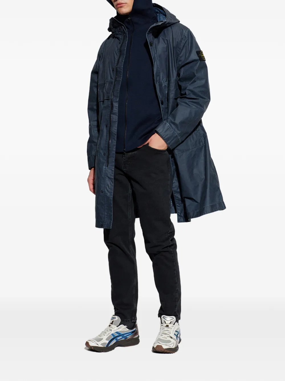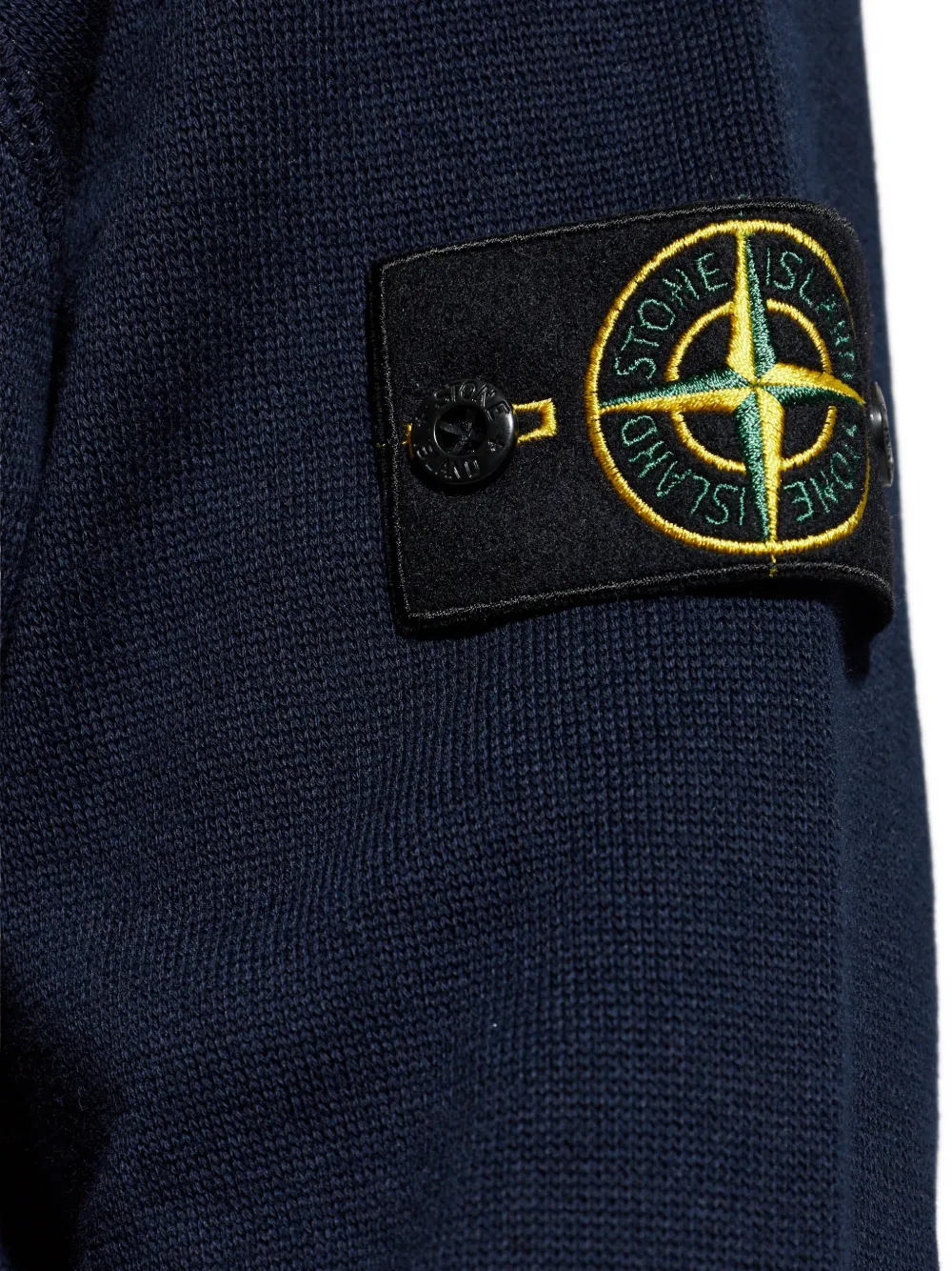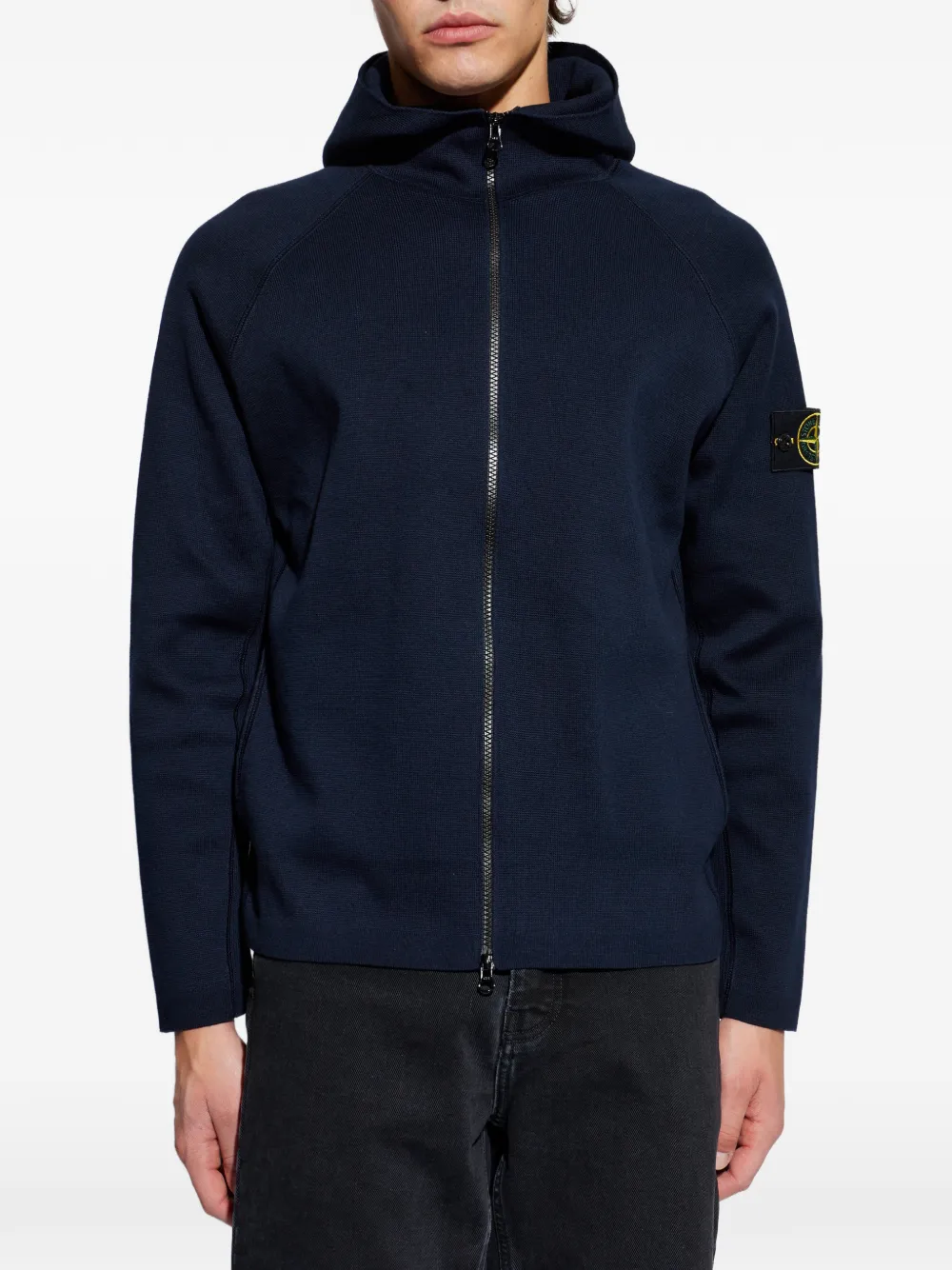Темно-синий худи с нашивкой-логотипом, застежкой на молнии и длинными рукавами