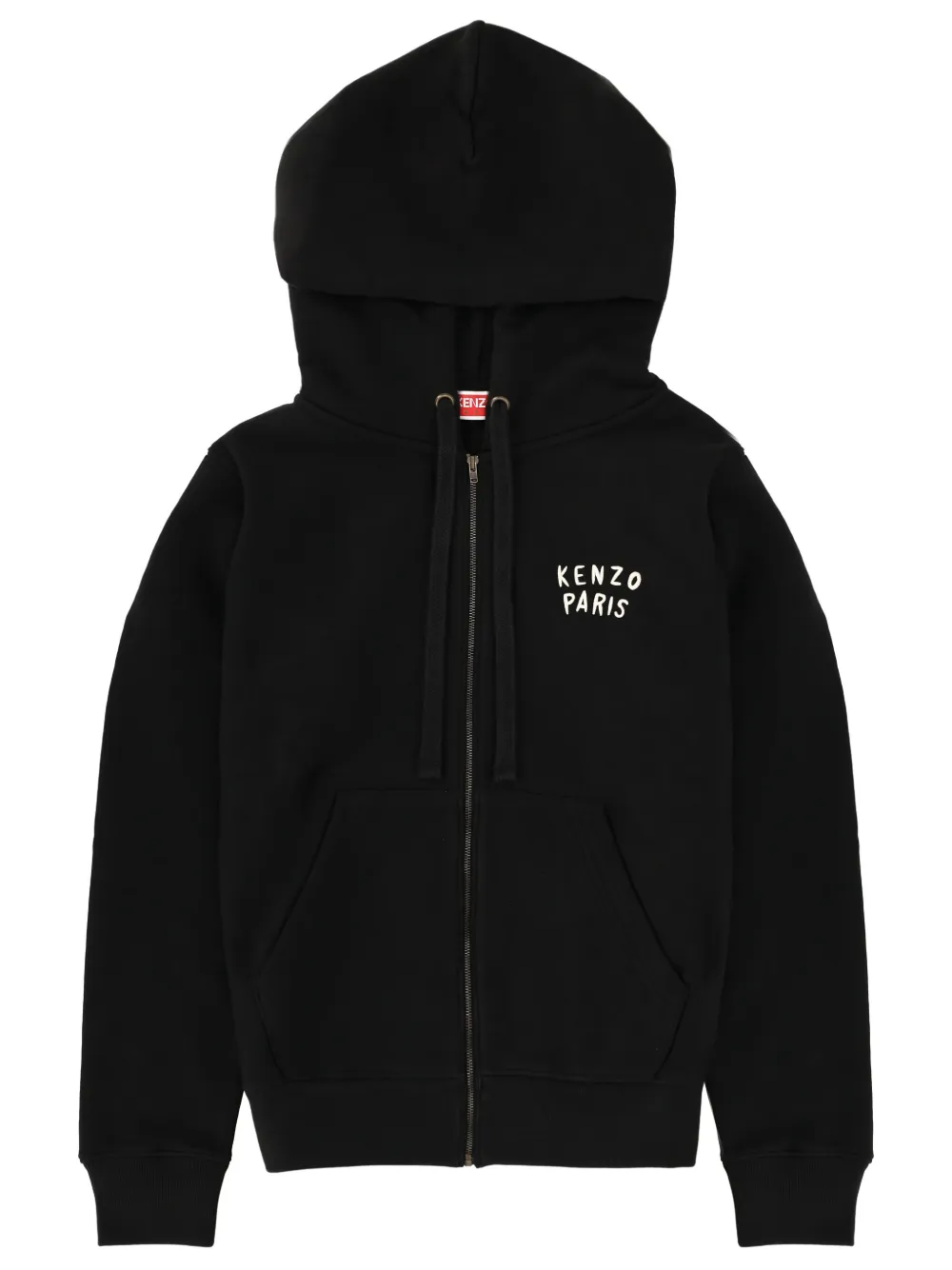 Черная толстовка с капюшоном на завязках, застежкой-молнией спереди и передним карманом-кенгуру