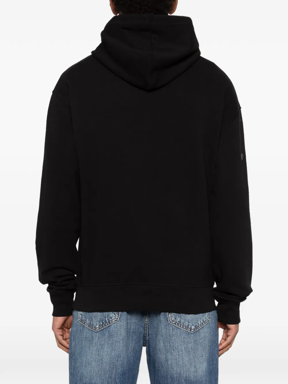 Черная толстовка с логотипом, кулиской на капюшоне, передним карманом-кенгуру, длинными рукавами и ребристыми краями