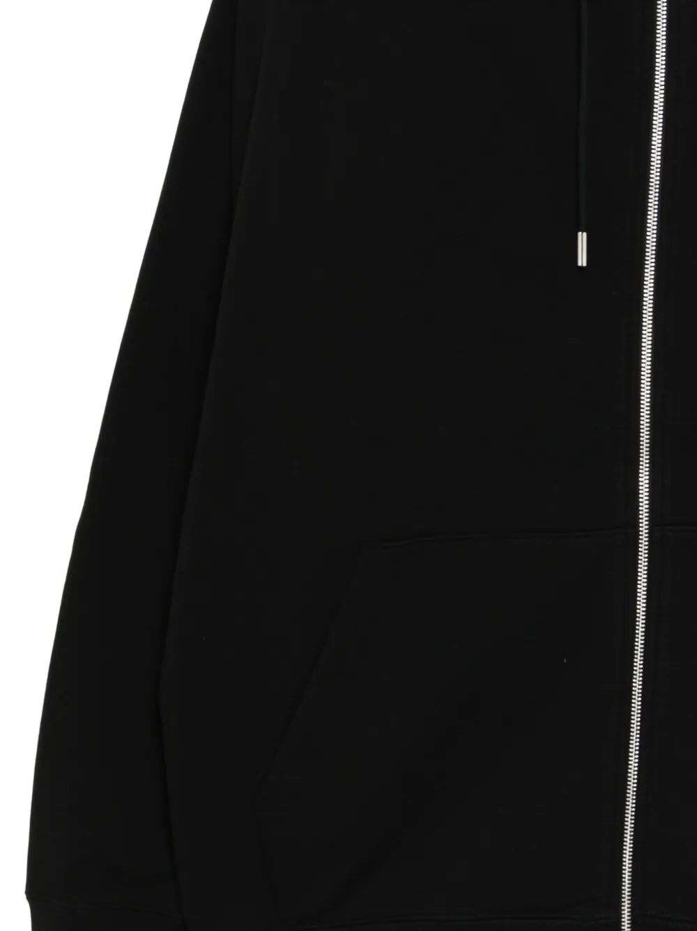 Черная толстовка с застежкой-молнией спереди, завязками на капюшоне, накладным карманом-кенгуру, ребристыми манжетами и поясом