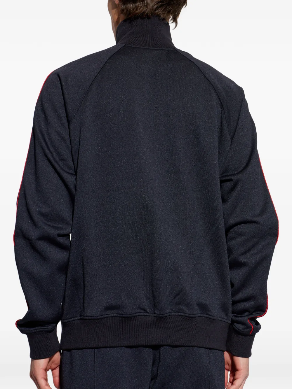 Синий цвет, застежка-молния, боковые карманы, высокий воротник, полосатые детали, вышитый логотип