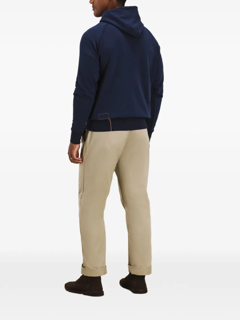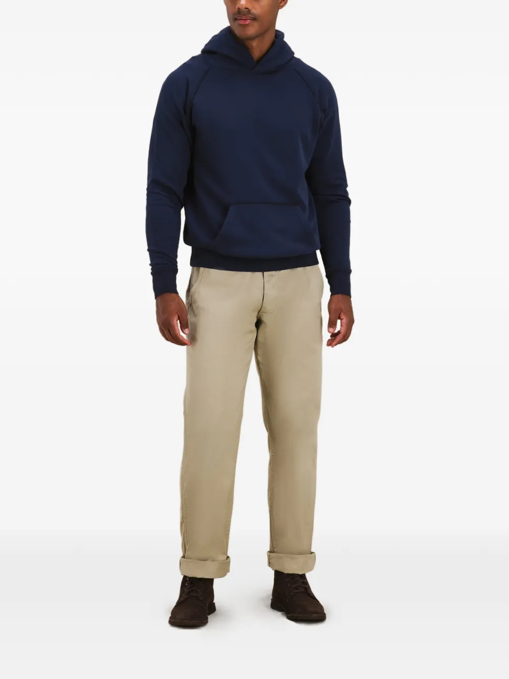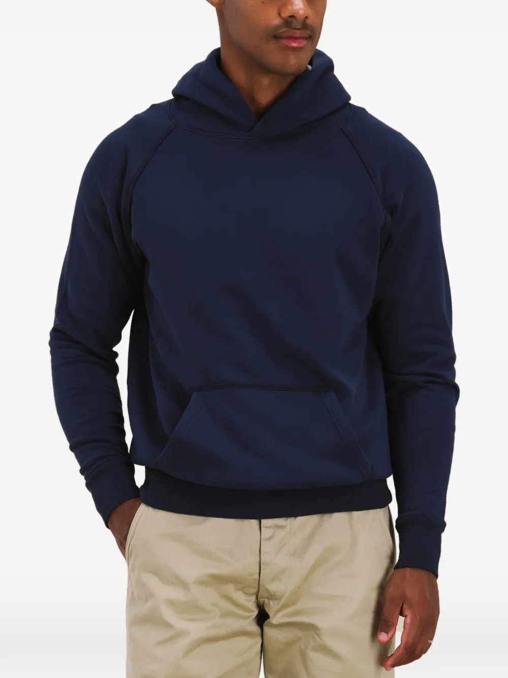 Синее худи с карманом-кенгуру и ребристыми краями