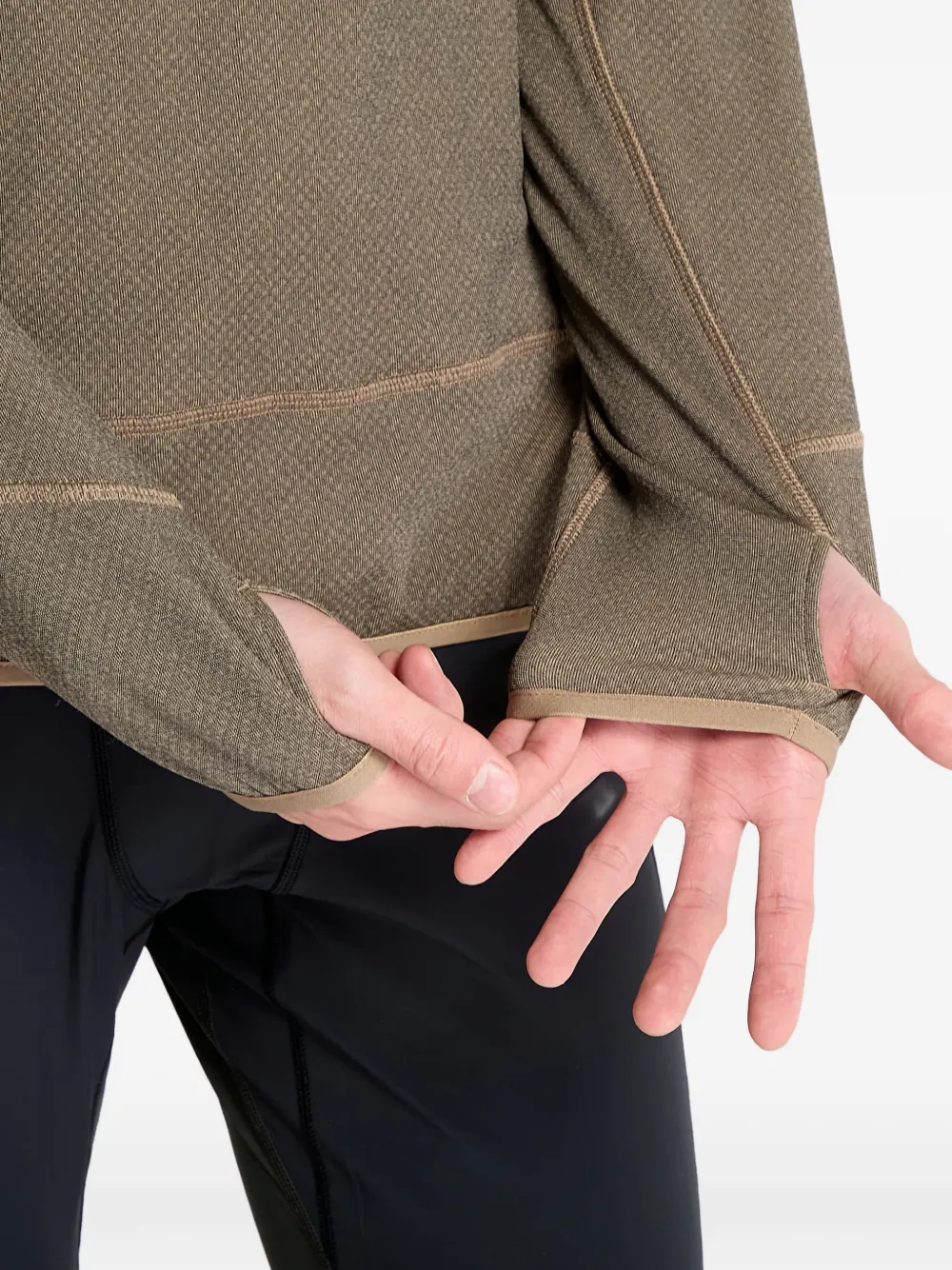 Коричневый свитер с высоким воротником, прорезями для больших пальцев, отделанным краем и ромбовидным узором