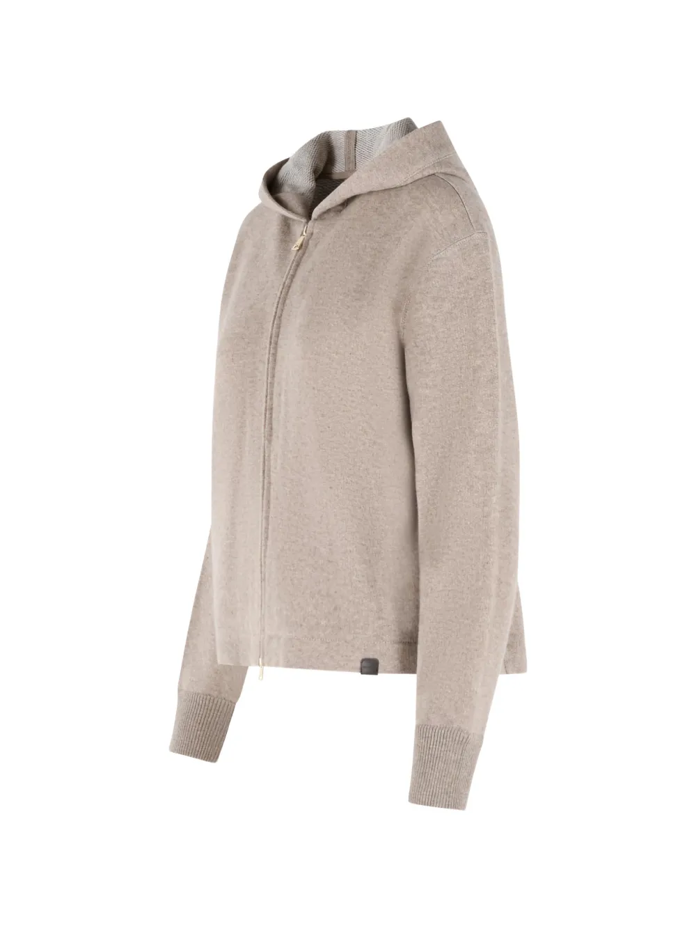 Бежевый классический худи на молнии, ребристые манжеты, миниатюрная бирка с логотипом