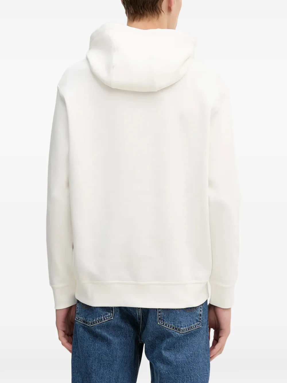Белый худи с логотипом, шнурком на капюшоне, длинными рукавами и эластичными манжетами