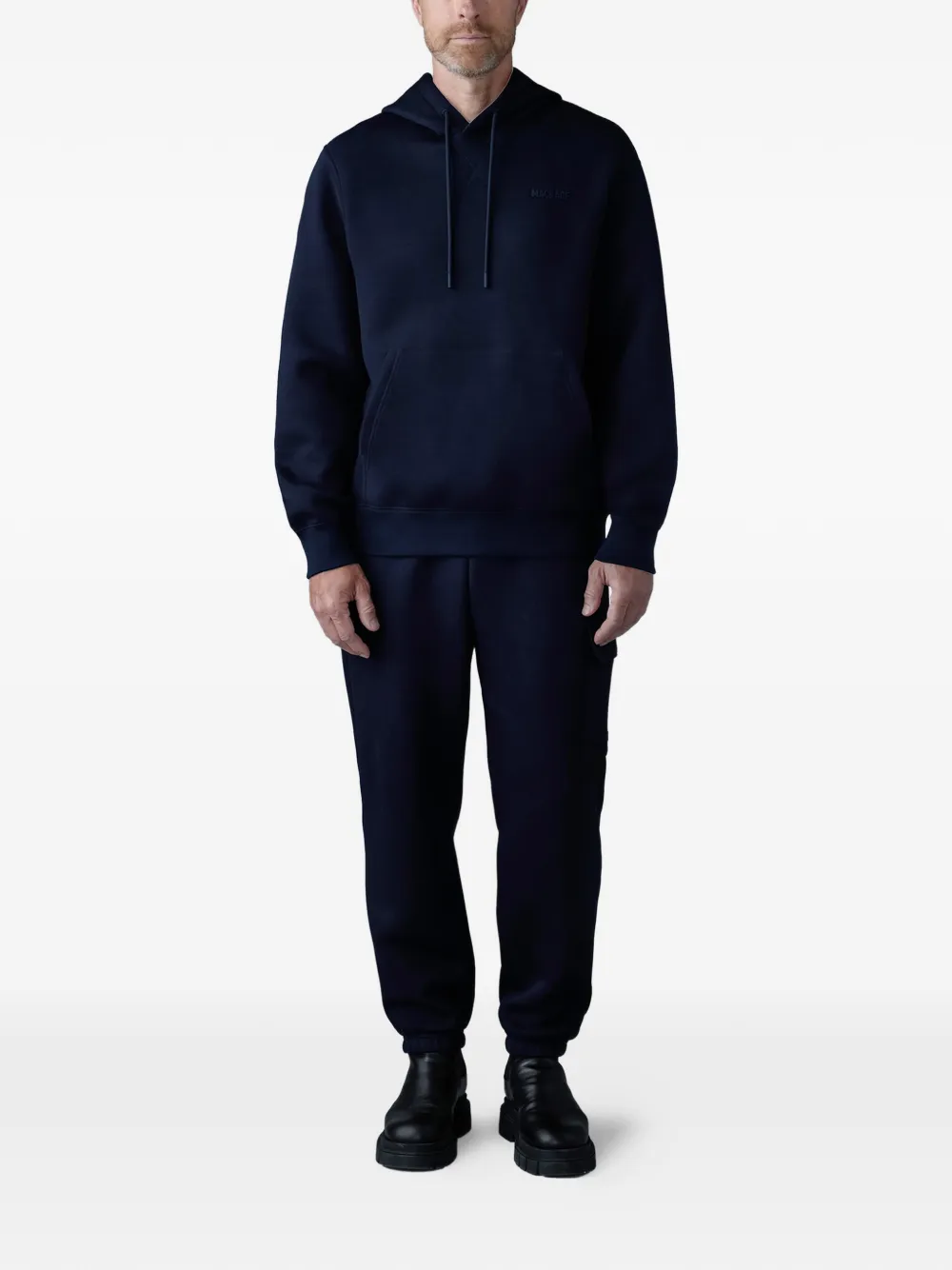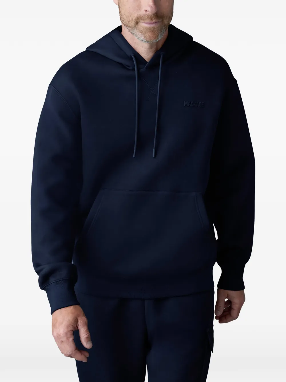 Темно-синяя толстовка с капюшоном на кулиске, вышитым логотипом и карманом-кенгуру