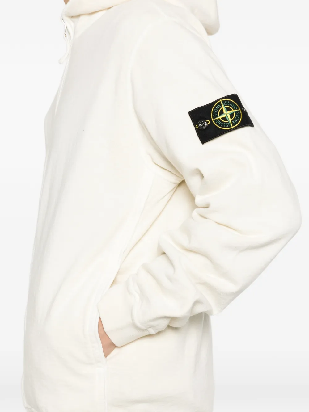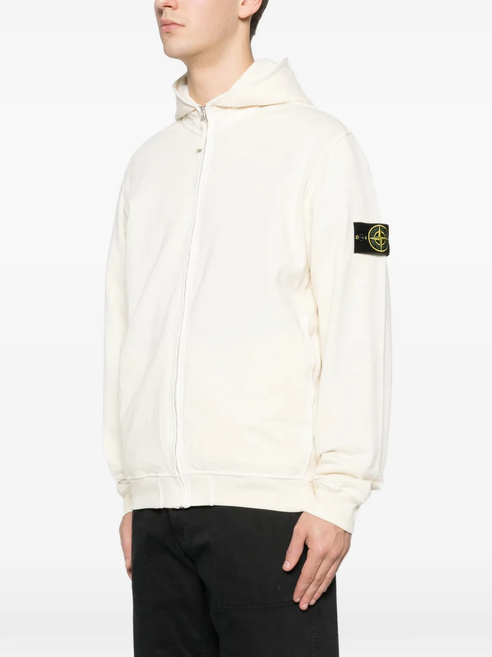 Бежевый худи с нашивкой-логотипом, застежкой-молнией, длинными рукавами и рубчатым подолом