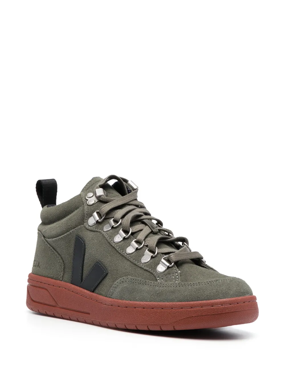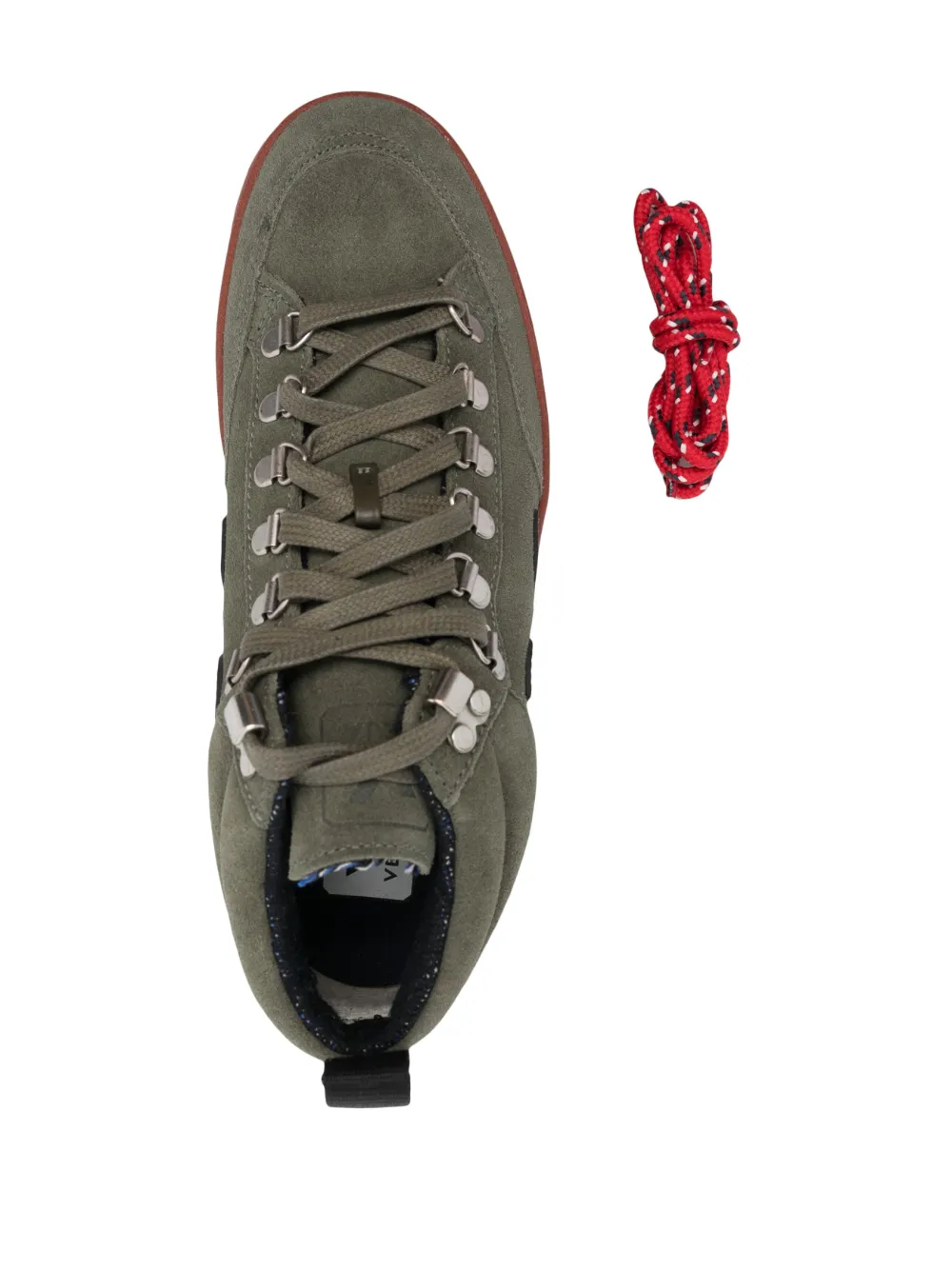 Подробнее о товаре: Оливково-зеленый, замша из телячьей кожи, вставки, нашивка с логотипом сбоку, тисненый логотип на язычке, тисненый логотип сзади, стелька с логотипом, петля для подтягивания сзади, высота по щиколотку, шнуровка спереди, закругленный носок, плоская резиновая подошва, отделка металлическими люверсами и сменные шнурки. Узнать больше о том, какие товары получают отметку «Ответственный выбор», можно из материала «Как мы оцениваем экологичность и этичность».