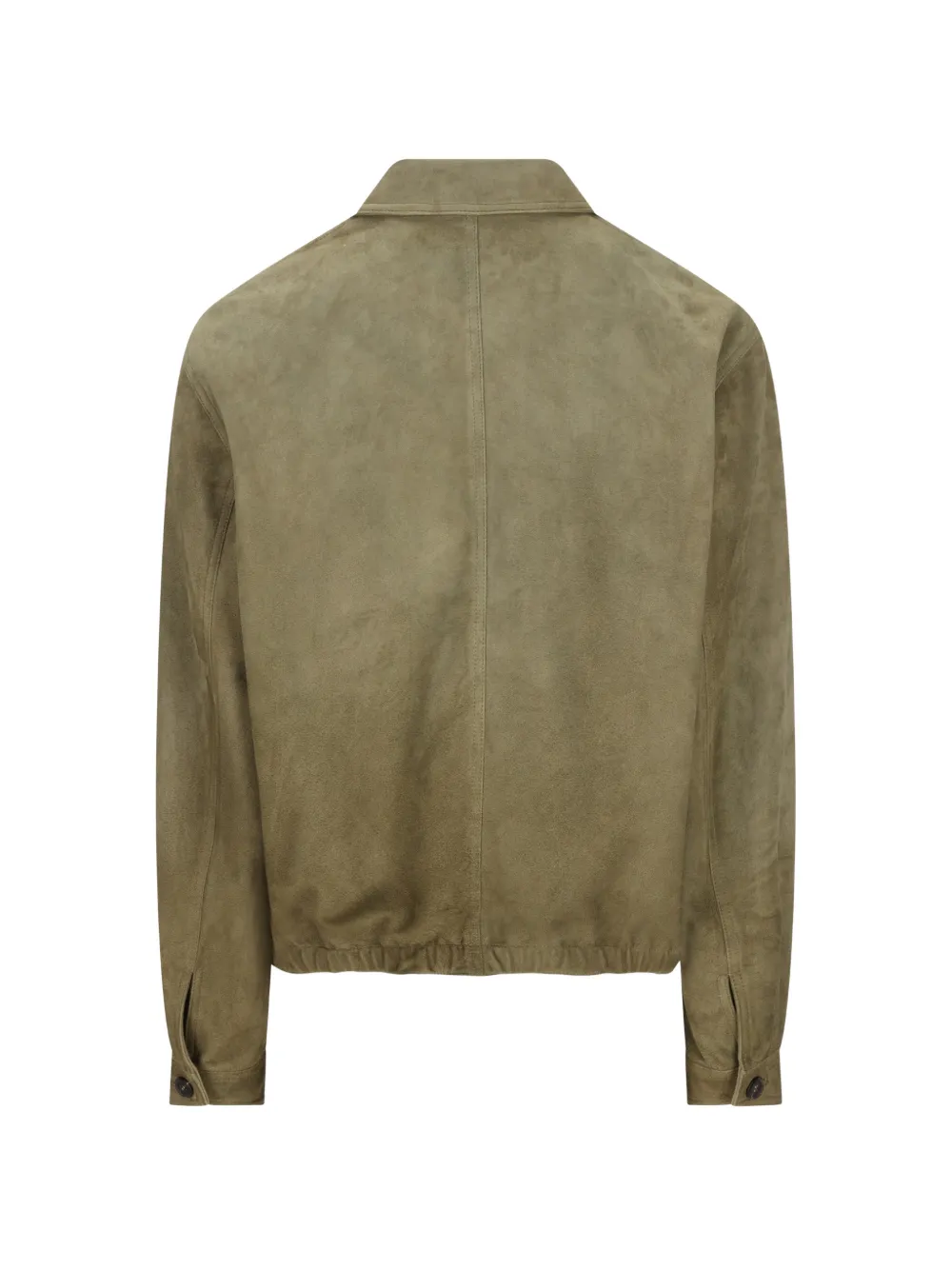 Зеленая куртка с застежкой-молнией, треугольным логотипом, воротником с острыми уголками, эластичным подолом и манжетами на пуговицах