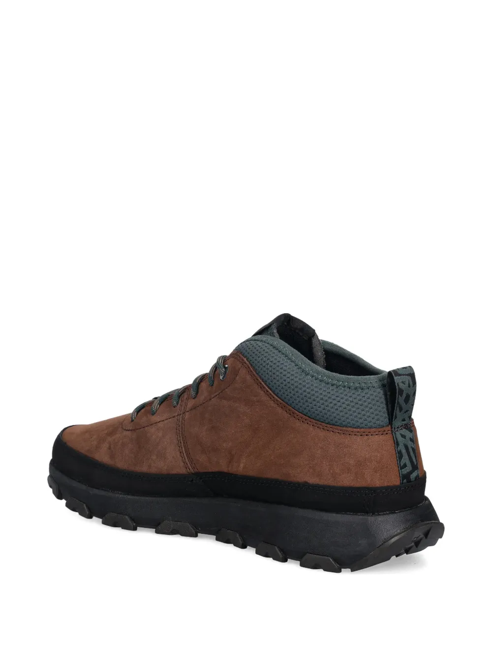 Коричневый цвет, деталь с логотипом, шнуровка спереди, петля на пятке, резиновая подошва