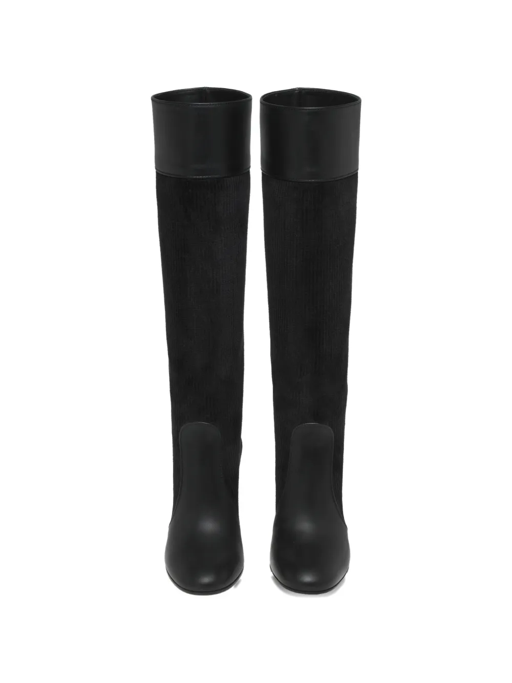 Черные сапоги до колена с блочным каблуком и панельным дизайном