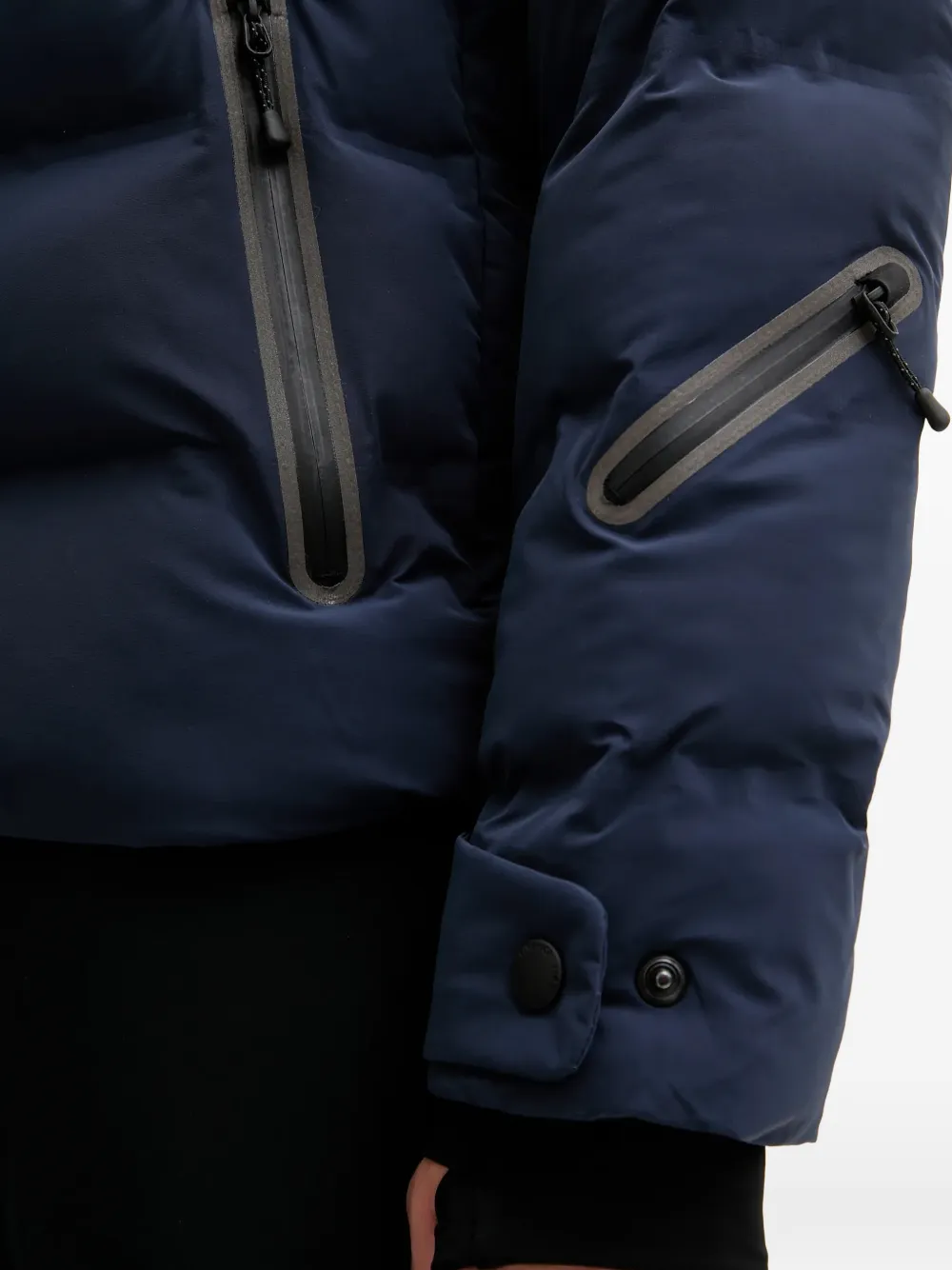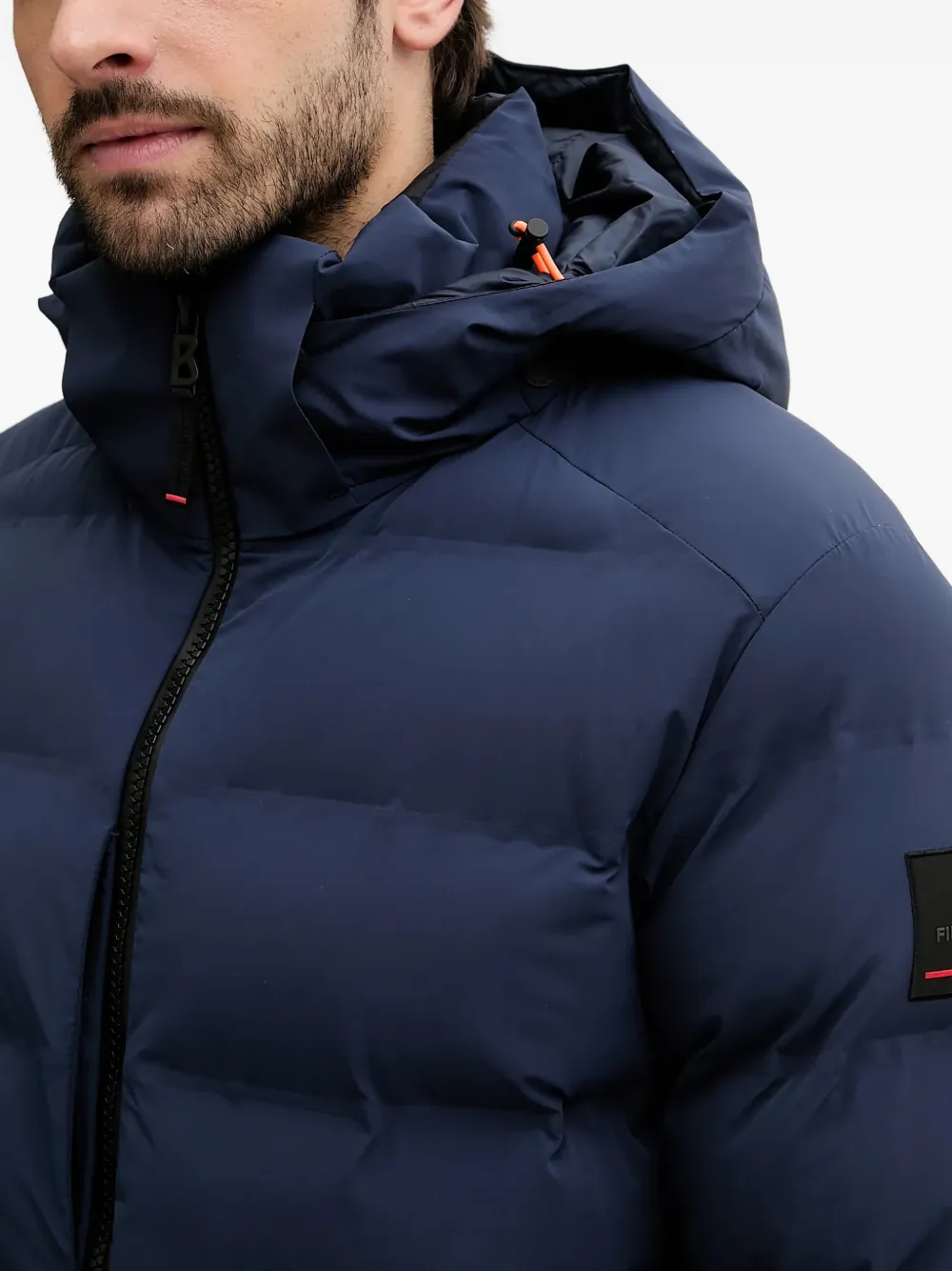 Темно-синяя стеганая куртка с капюшоном, нашивкой с логотипом, застежкой-молнией и эластичными манжетами