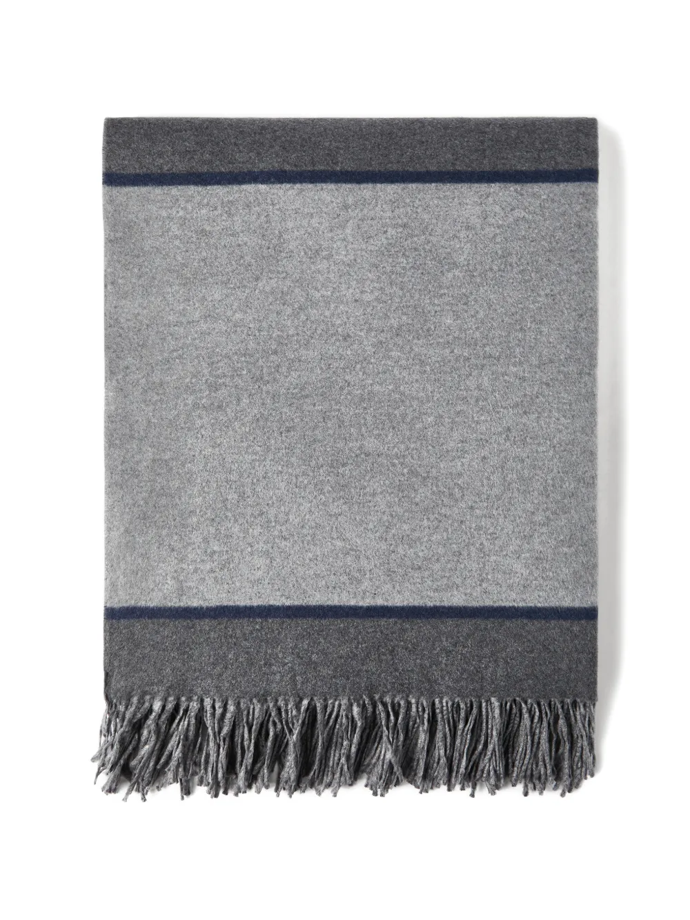 Полосатый шелковый плед с бахромой Brunello Cucinelli, серый