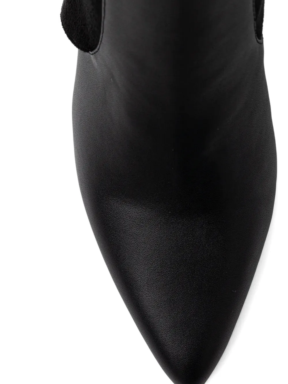 Черные туфли с пряжкой, декоративным элементом, заостренным носком и низким каблуком-шпилькой