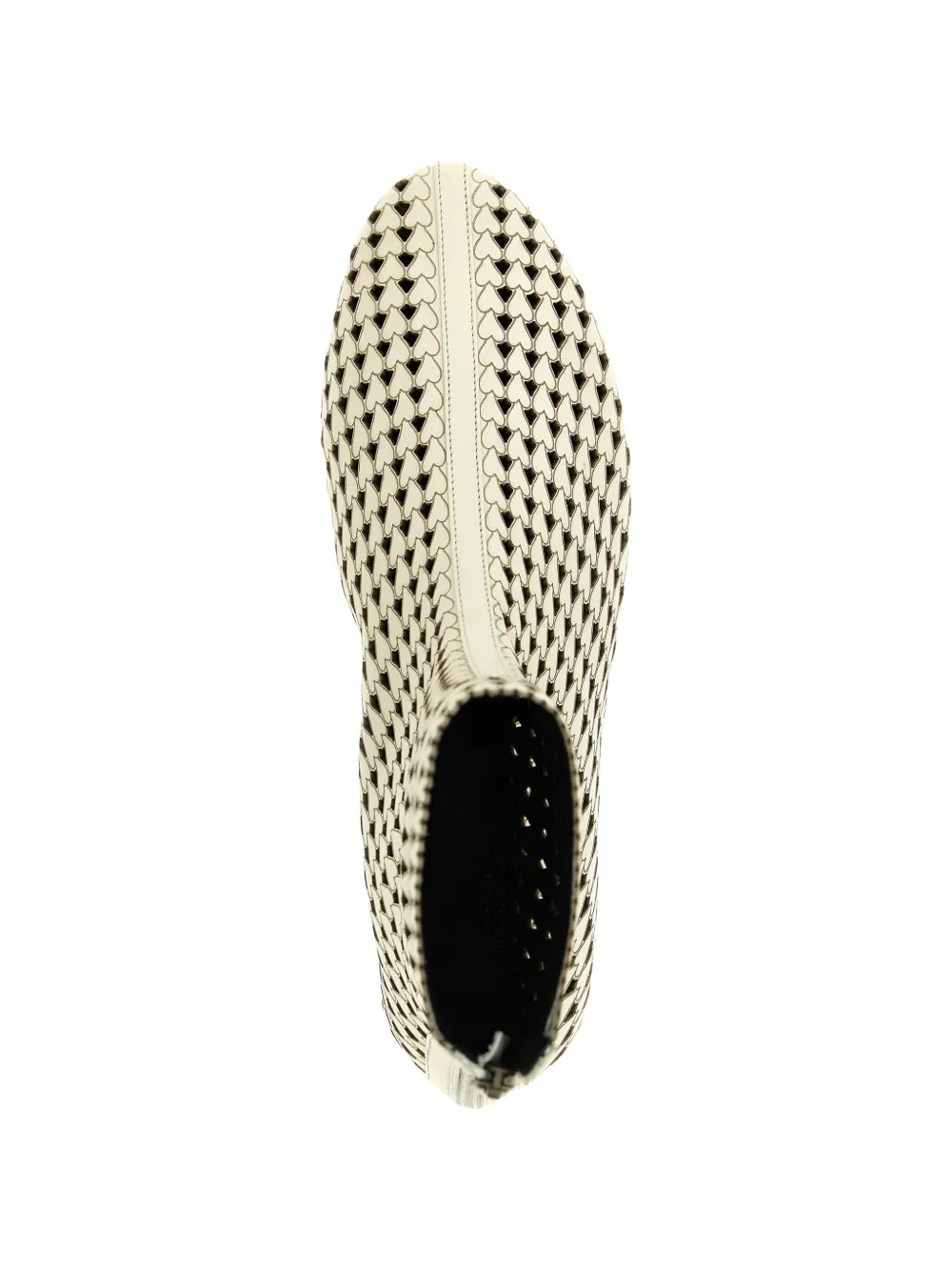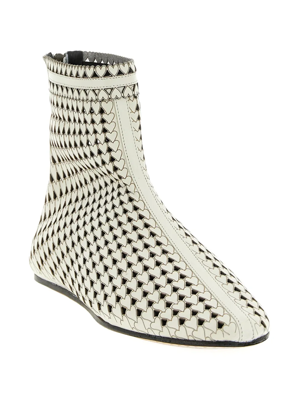 Бежевые ботильоны из кожи с лазерной перфорацией в виде сердец, круглым носком, застежкой-молнией сзади, длина до щиколотки