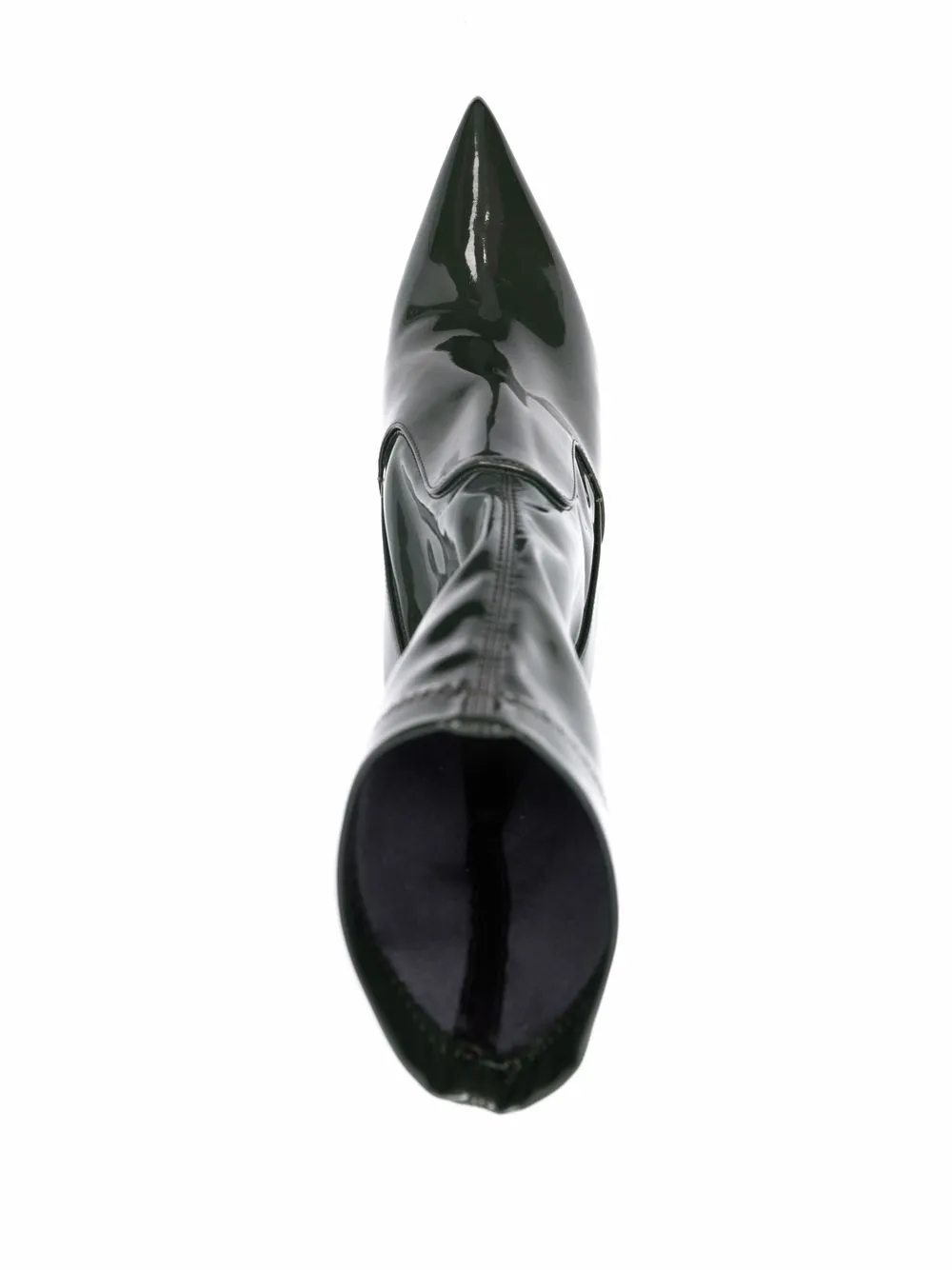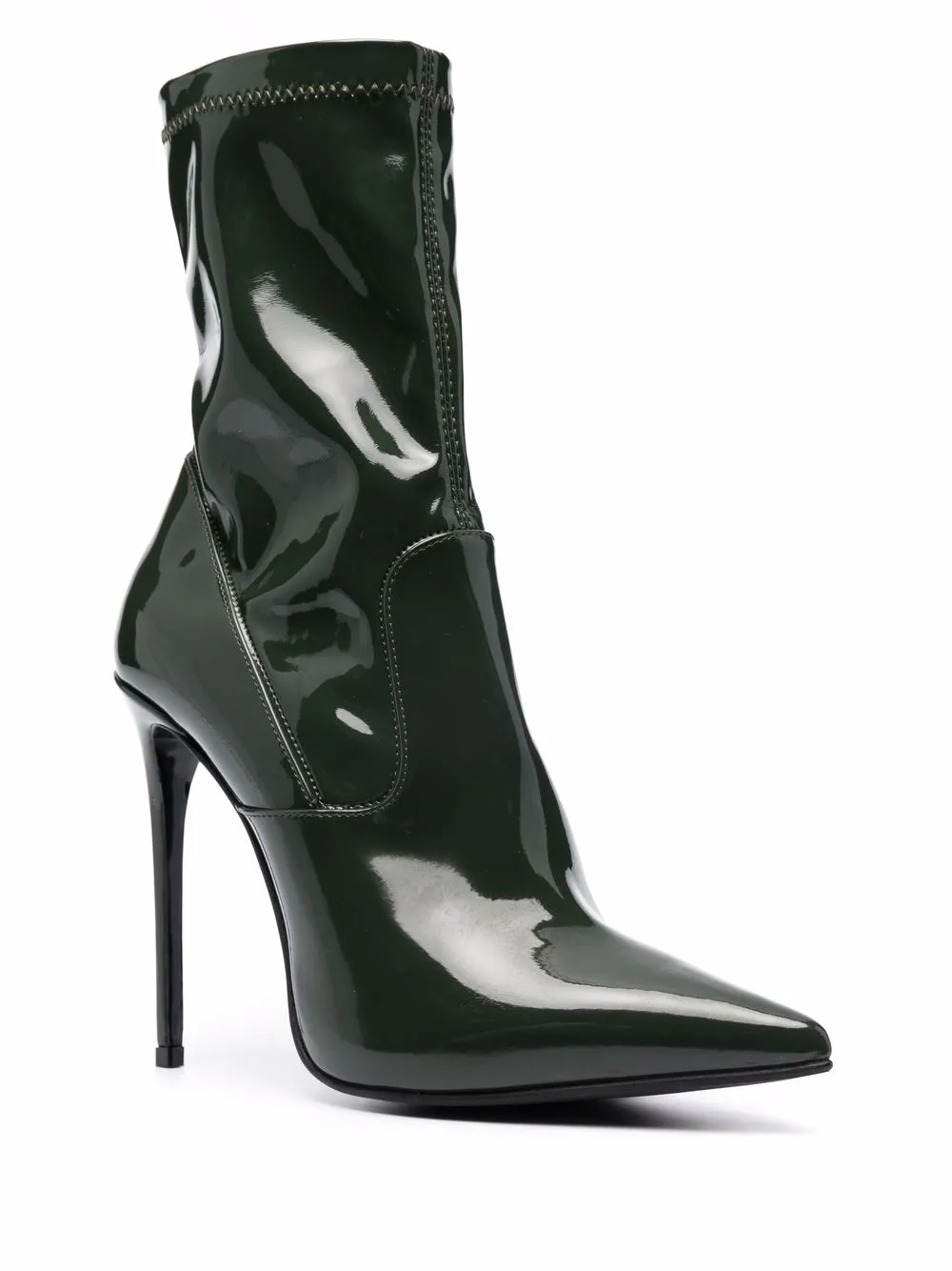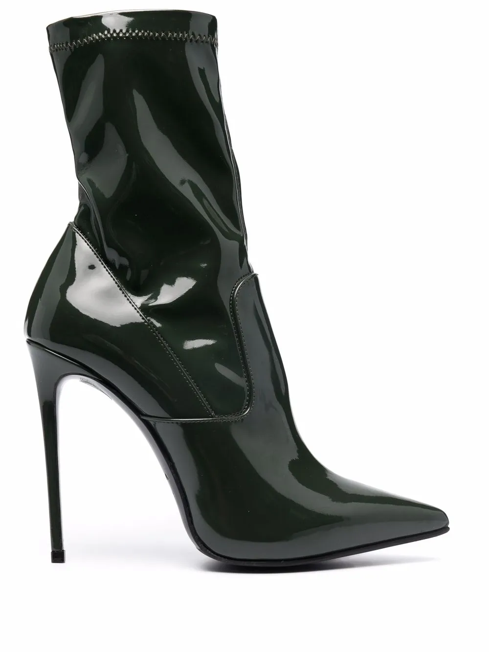 Заостренный носок, модель без застежки и каблук на высокой шпильке.