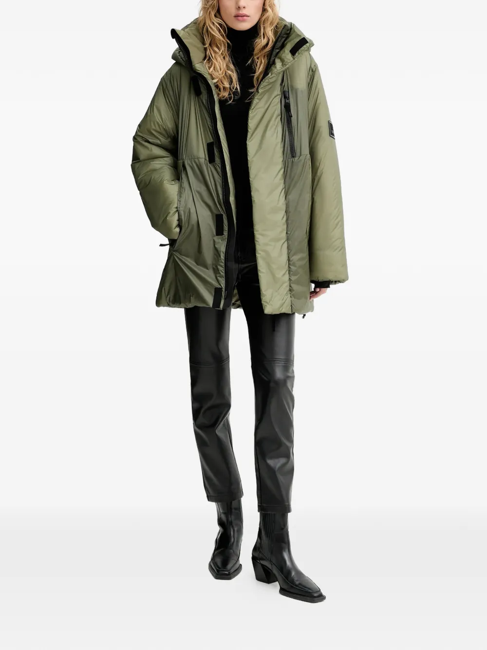 Болотного цвета стеганый дизайн, капюшон, застежка-молния спереди, боковой карман на молнии, накладные карманы спереди