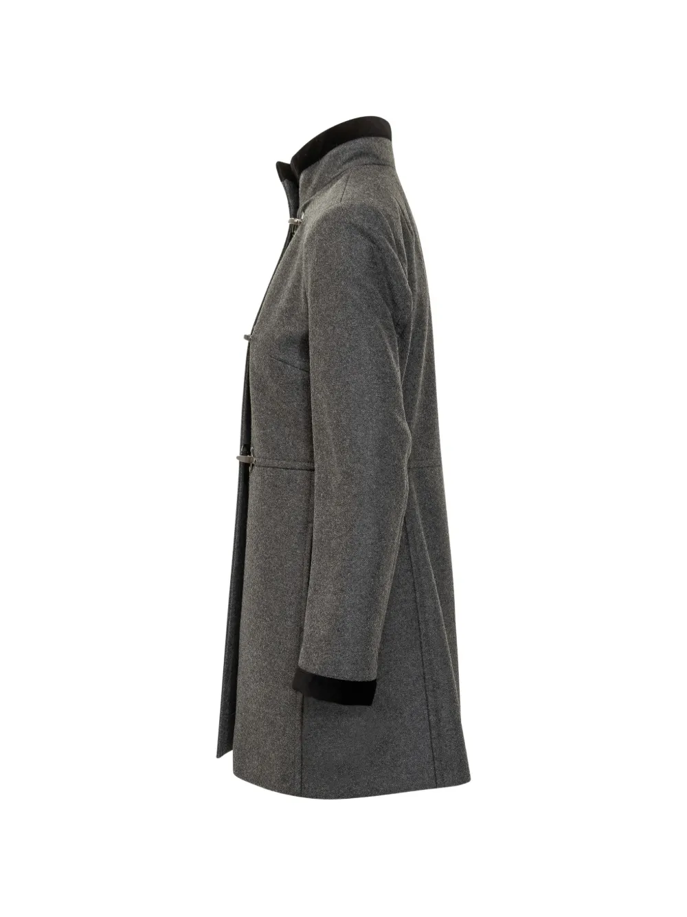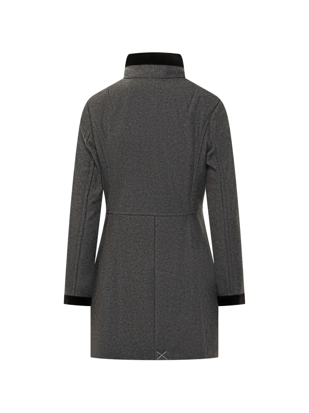 Серый свитер с высоким воротом, застежкой на крючки, длинными рукавами, отделкой и прямым подолом