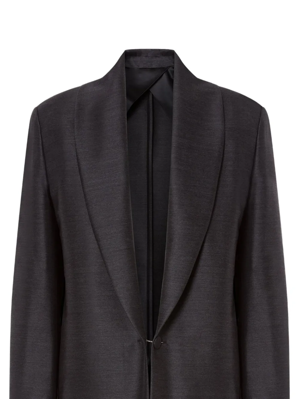 Серый кардиган с шалевым воротником, застежкой на пуговицы и длинными рукавами