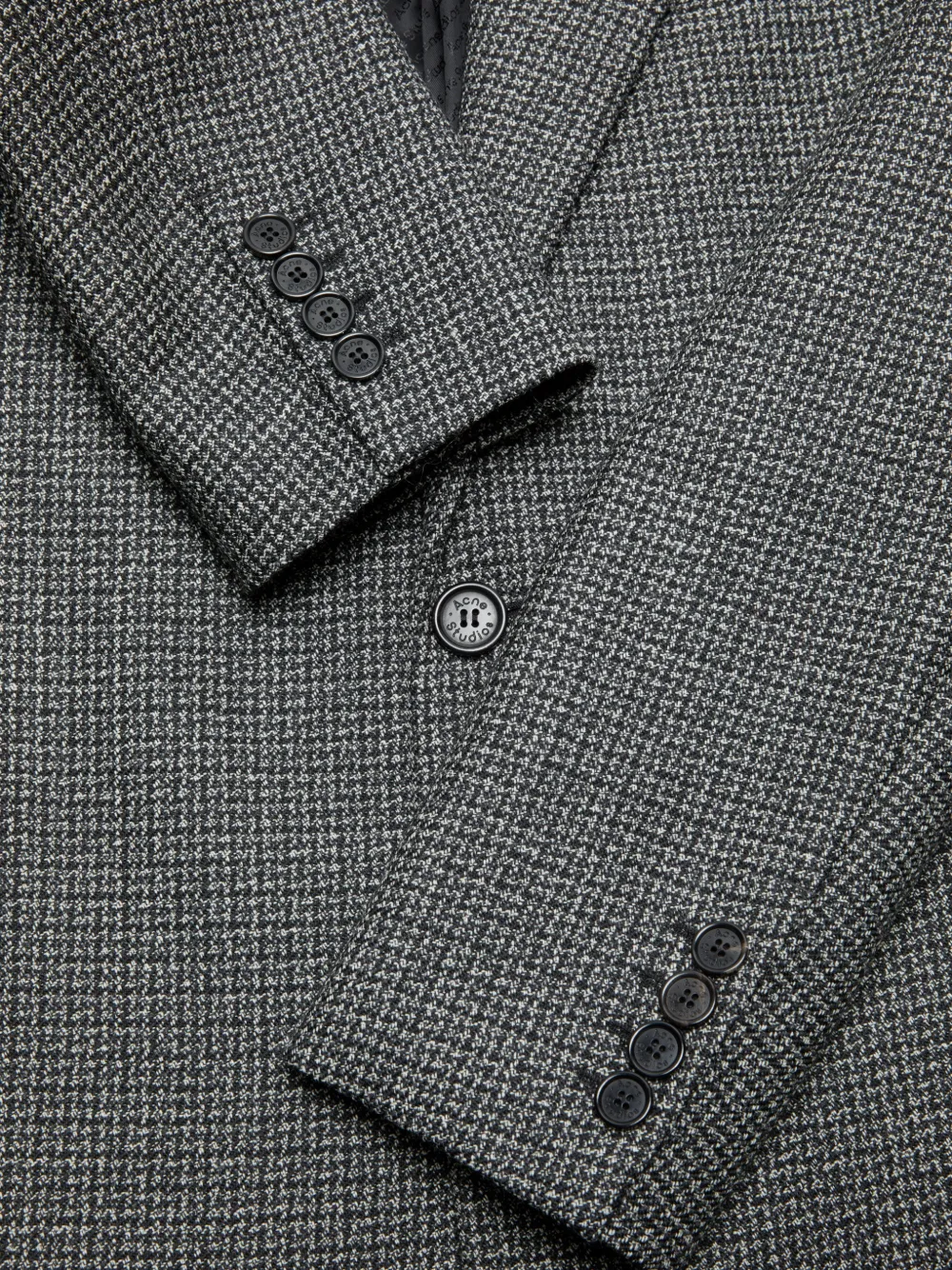 Черный цвет, застежка на пуговицы, длинные рукава, узор по всей поверхности, отложной воротник, манжеты на пуговицах