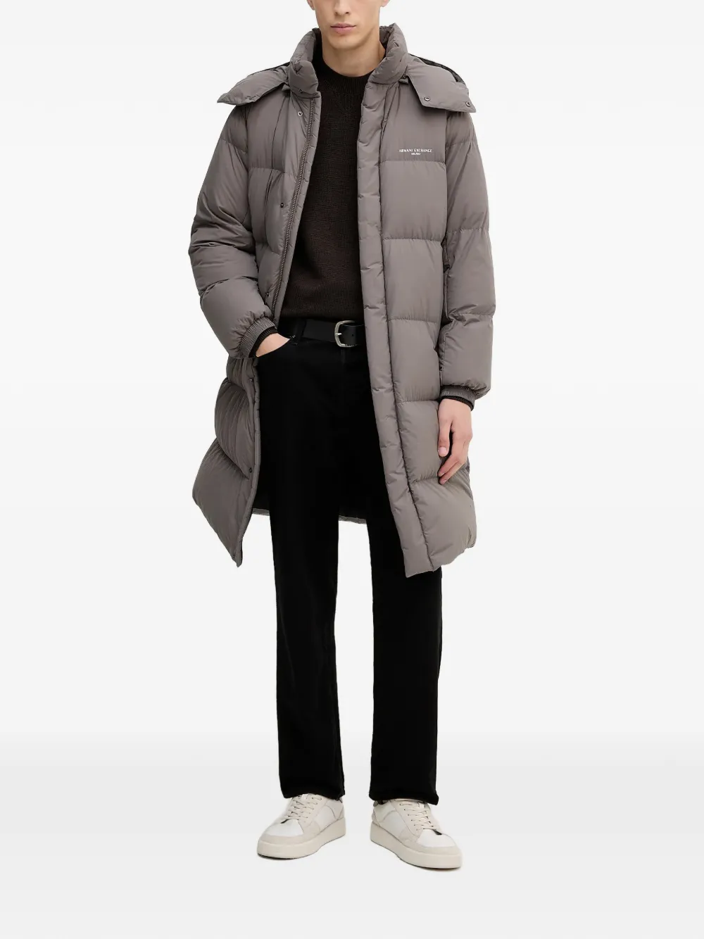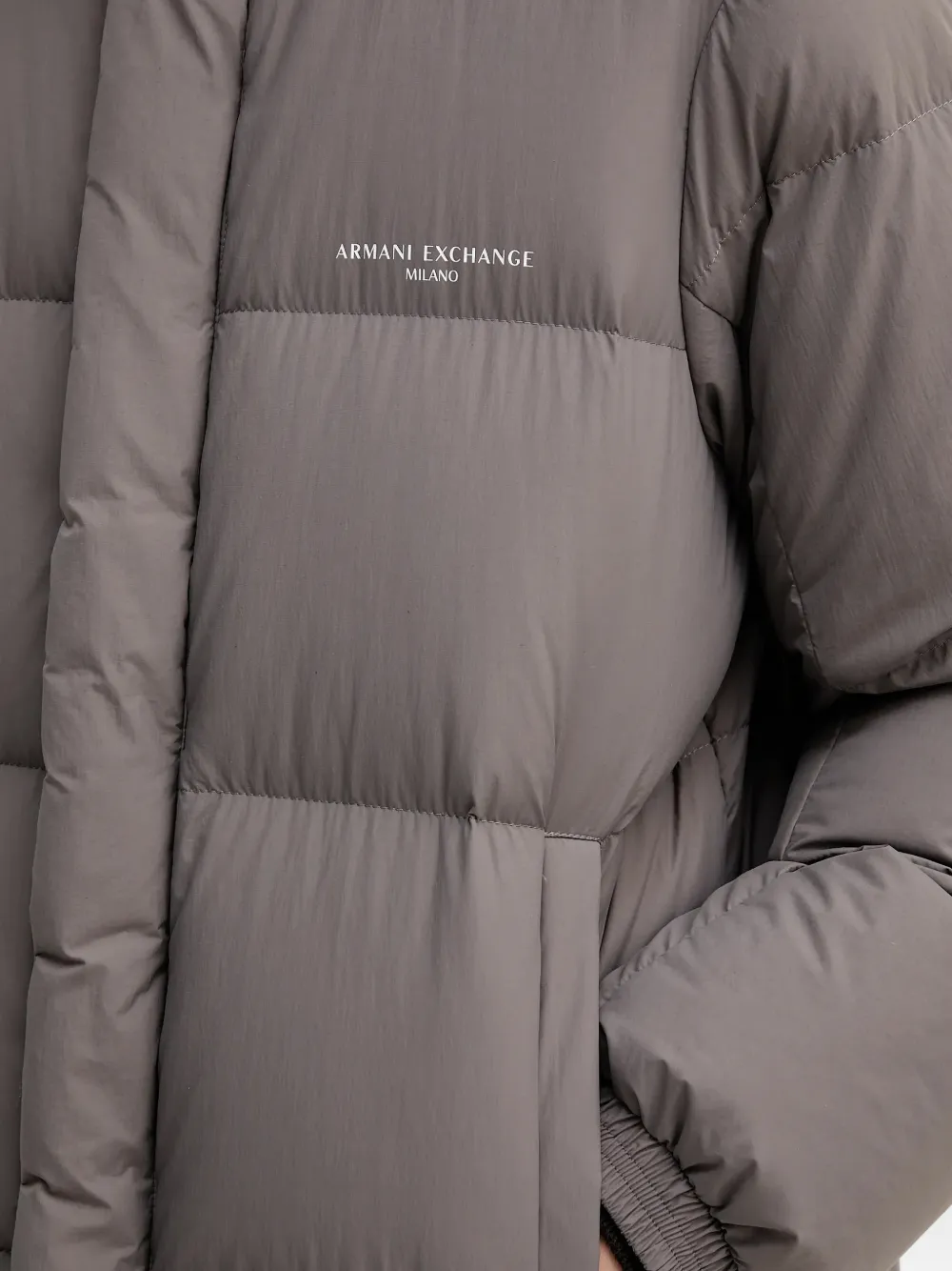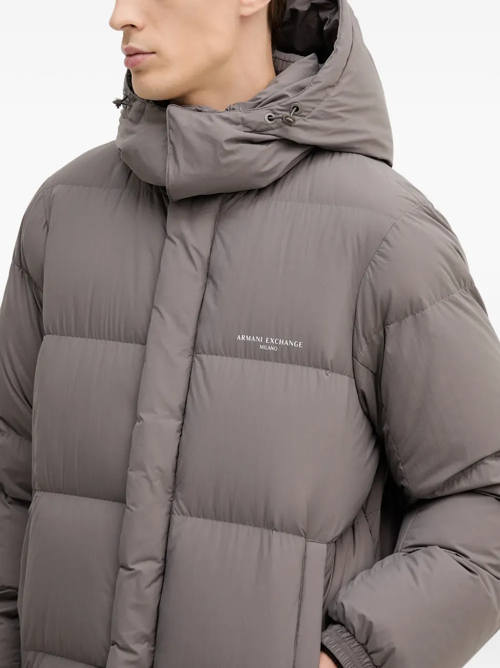 Стеганое пальто с капюшоном Armani Exchange, серый 63 933₽