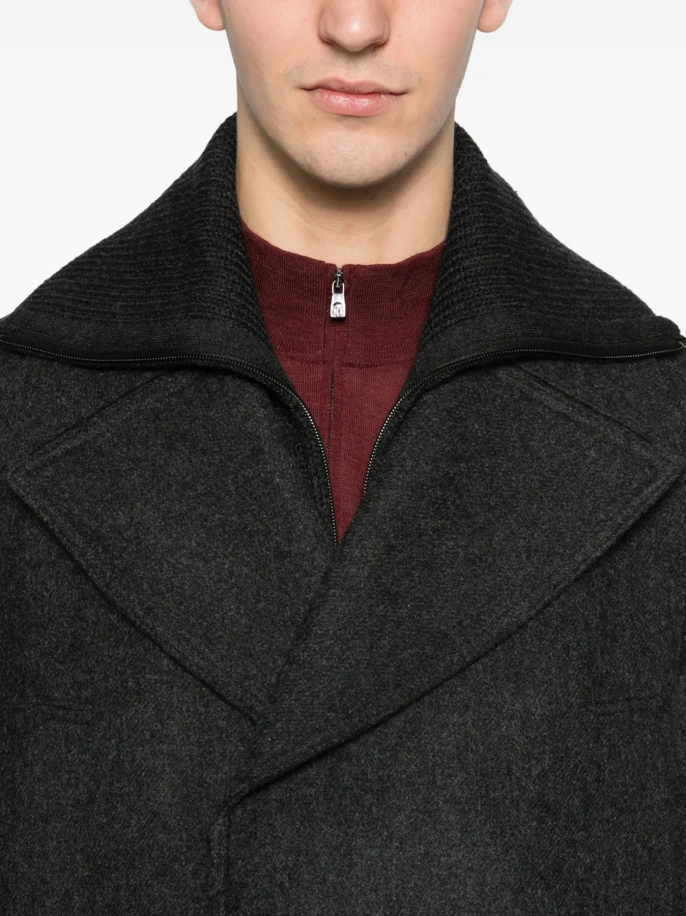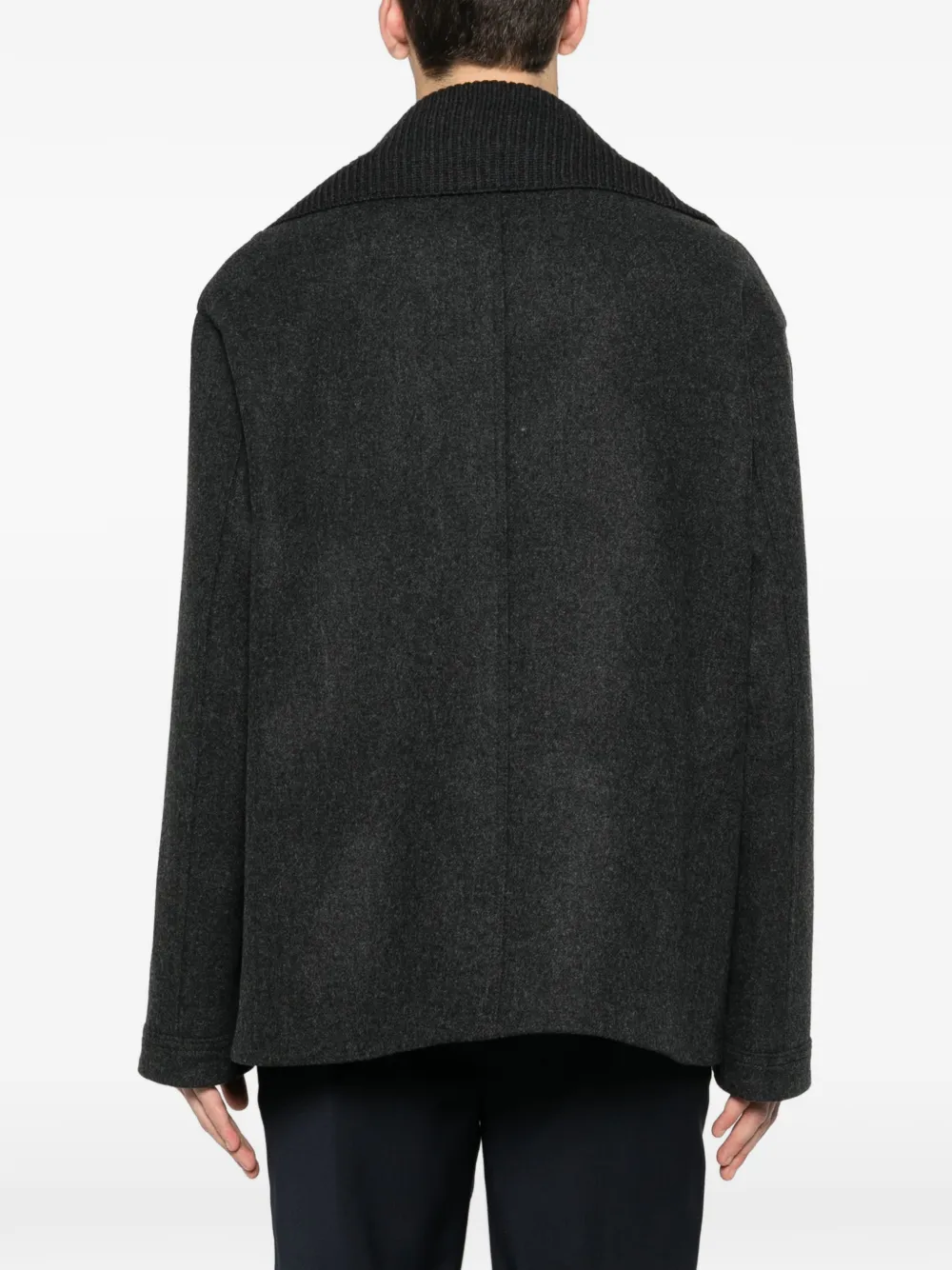 Темно-серый, воротник в рубчик, двубортная застежка на пуговицах