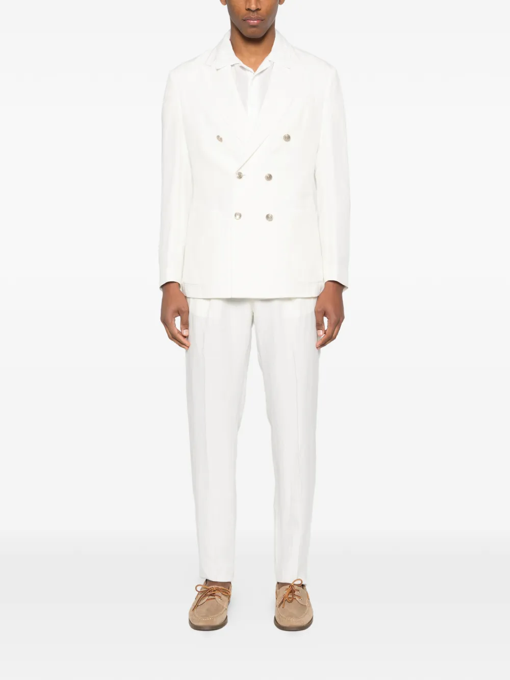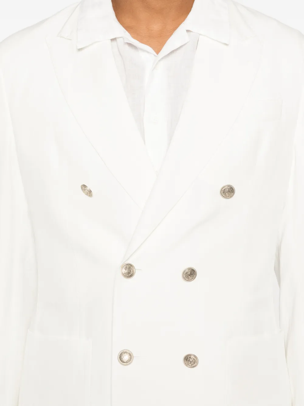 Белый двубортный застежка на пуговицы отделка пуговицами прорезные карманы длинные рукава