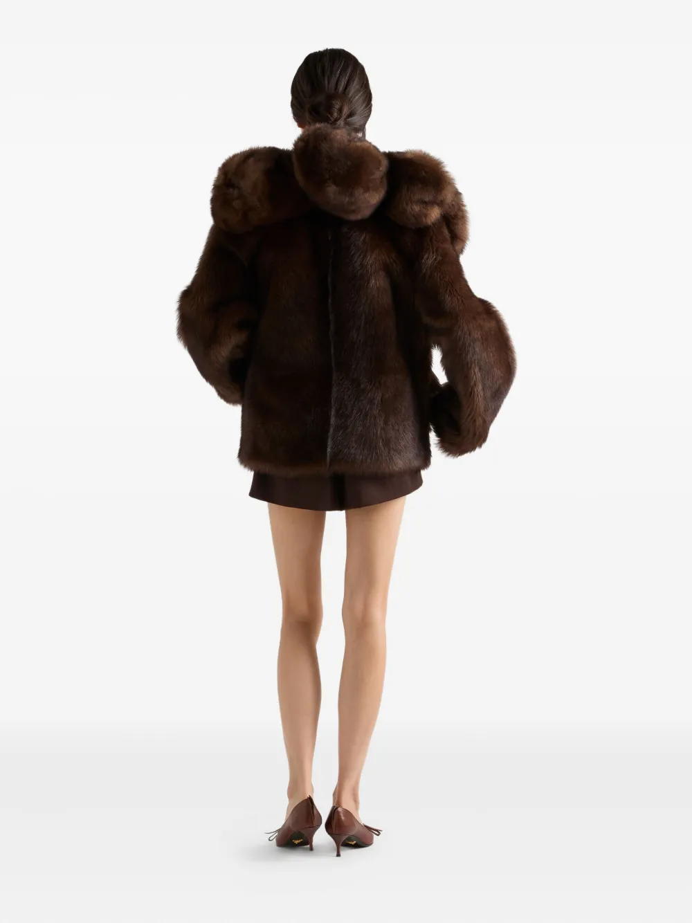 Дубленка из овчины с капюшоном Prada, коричневый 1 455 918₽