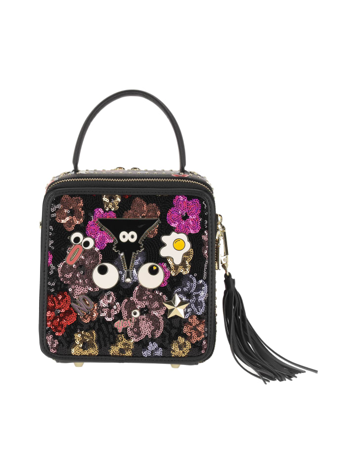 Эта очаровательная сумочка в форме коробки с верхней ручкой и регулируемым съемным ремешком сочетает в себе функциональность и молодежный стиль. Оснащенная молнией, двумя отделениями, бахромой и пайетками в качестве декоративных деталей, она изготовлена из прочной искусственной кожи с игривым принтом и мерцающим узором, идеально подходящей для юных модниц. Практичная, очаровательная и готовая к школе, она станет стильным дополнением к любой коллекции аксессуаров.