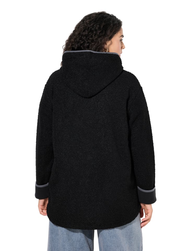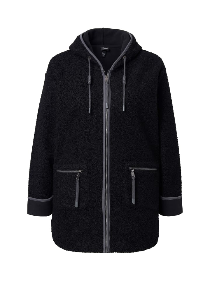 Куртка-«мишка», свободного кроя, изготовлена из мягкого флиса с флисовой подкладкой. Капюшон со шнурком, молния, два кармана на молнии, длинные рукава. Закругленный низ с боковыми разрезами для еще большей свободы движений.