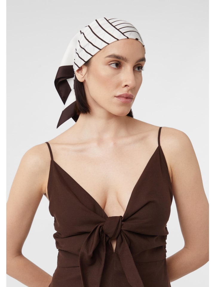 Элегантный шелковый шарф: этот узорчатый аксессуар из эксклюзивной коллекции comma x Füsun Lindner сочетает в себе элегантность и современность. Тонкая саржевая ткань на ощупь шелковисто-мягкая и добавляет изысканности любому наряду. Универсальный и стильный, он дополнит как деловые образы, так и повседневные ансамбли. Незаменимый аксессуар для тех, кто ценит высококачественные материалы и вневременной дизайн.