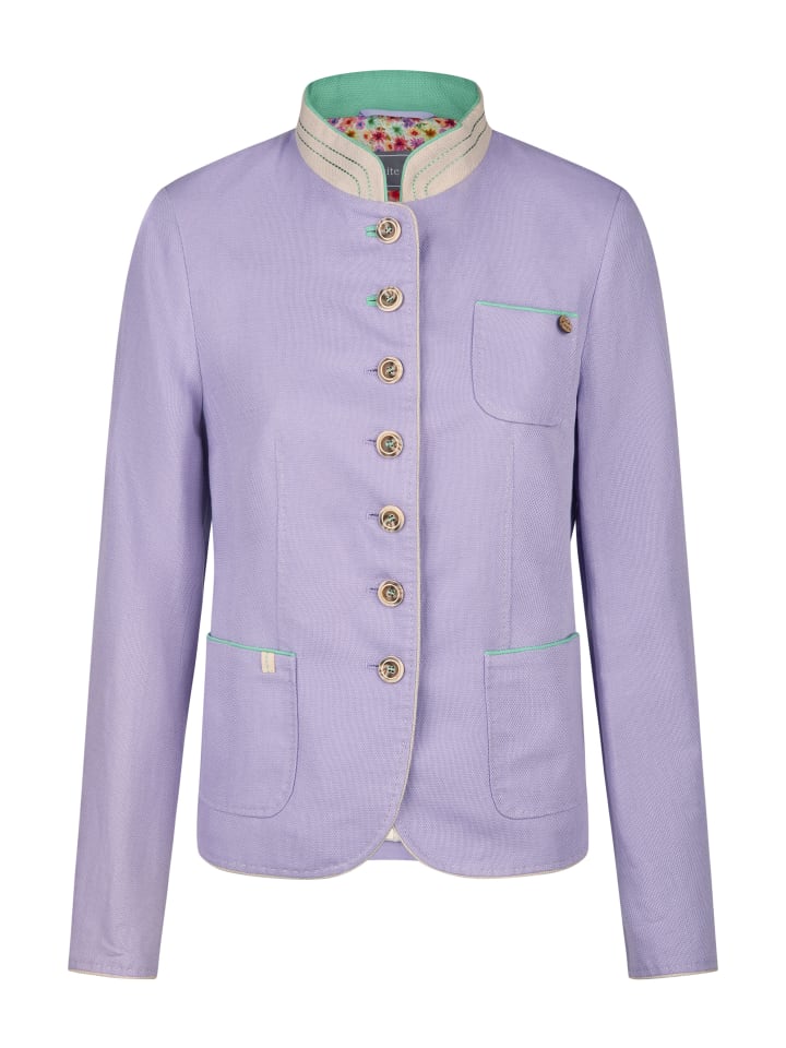 Этот стильный пиджак впечатляет контрастными деталями, такими как окантовка петель для пуговиц, окантовка по переднему краю, воротнику, пройм карманов и манжетам рукавов. Воротник-стойка и накладные карманы с вышивкой AMF добавляют элегантности. Подкладка в сочетании с подкладкой с принтом обеспечивает исключительный комфорт. Длина в размере 38: 58 см. Универсальный пиджак для современного образа с традиционным шармом.