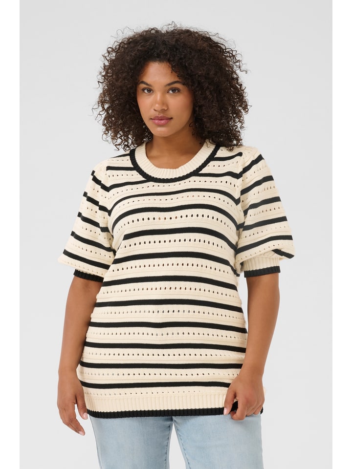 KAFFE curve Свитер бежево-черного цвета