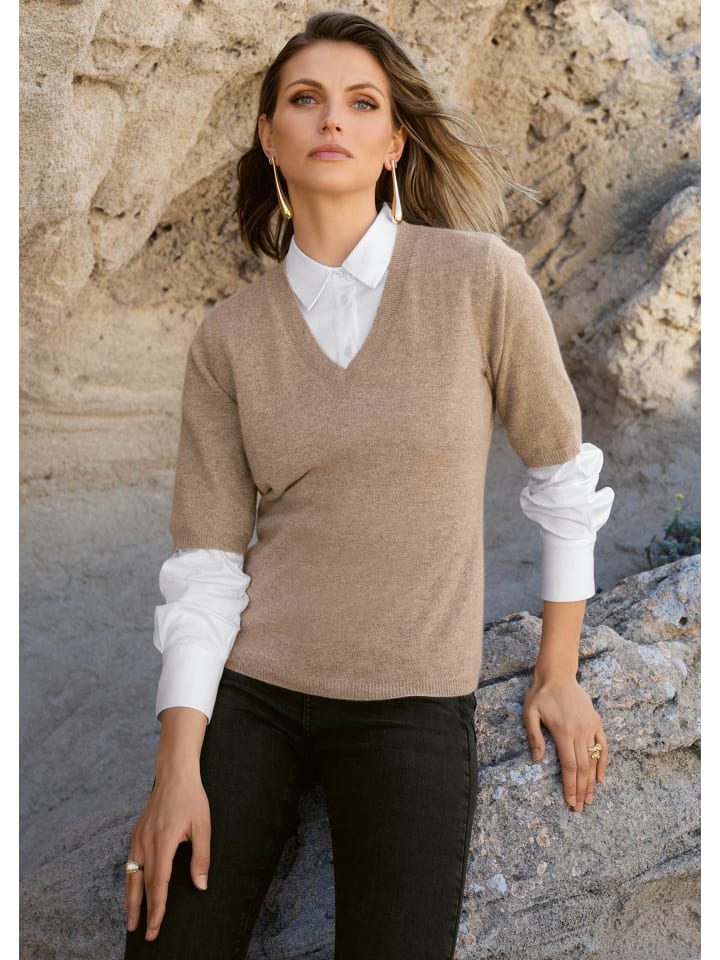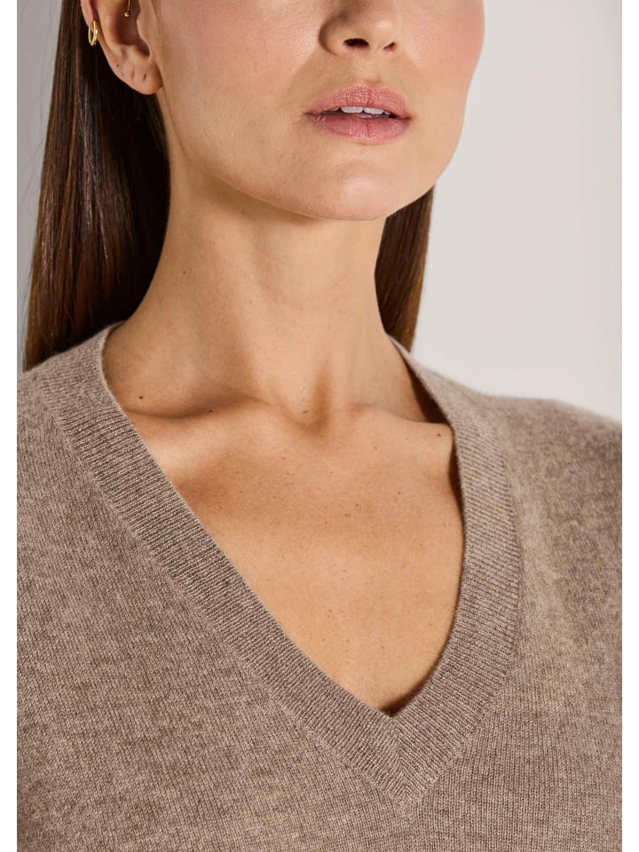 Роскошная базовая вещь для бесчисленных сочетаний. Этот кашемировый свитер с короткими рукавами невероятно мягкий на ощупь благодаря своей роскошной вязке. Мы разработали его со слегка приталенным силуэтом и V-образным вырезом для вневременного стиля. Совет: сочетайте его с джинсами для изысканного или повседневного образа.