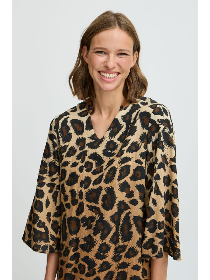 Платье миди с ярким анималистическим принтом, прямого кроя, V-образным вырезом и широкими рукавами три четверти. Мягкое, приятное на ощупь. Машинная стирка при 30°C, не отбеливать, не сушить в сушильной машине, сушить в подвешенном состоянии, гладить при низкой температуре (макс. 110°C), химчистка. Состав ткани: 80% вискоза, 20% полиамид. Особенности: - Модное тканое платье от ведущего датского бренда - Комфортное в ношении благодаря высококачественному материалу - Простое и универсальное - Удобный крой - Для современного образа на отдыхе или работе - Прямой силуэт миди - V-образный вырез - Широкие рукава три четверти - Яркий принт по всей поверхности - Мягкое, приятное на ощупь. Материал: - 80% вискоза - 20% полиамид