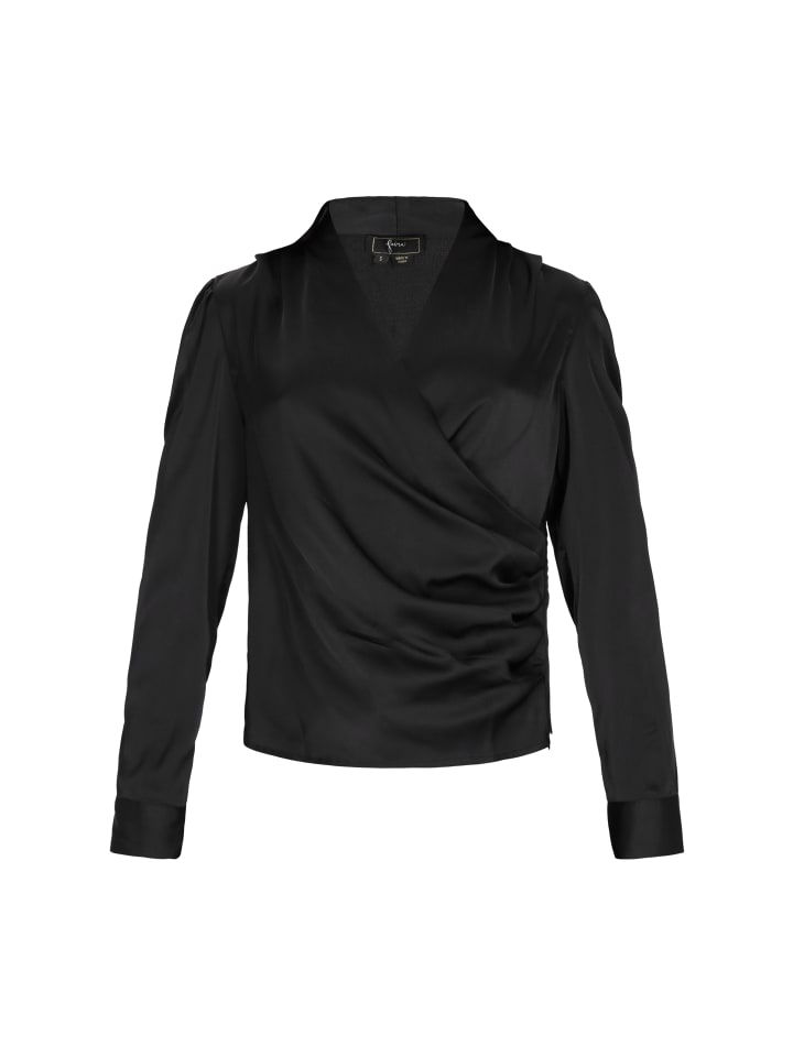 Эта элегантная блузка из коллекции Faina, сшитая из роскошного атласа и имеющая стандартный крой, сочетает в себе комфорт и изысканный стиль. V-образный вырез и застежка-запах с деликатной драпировкой подчеркивают женственный силуэт, а длинные рукава-епископ добавляют нотку утонченной элегантности. Однотонный крой делает эту блузку идеальной для элегантных и праздничных случаев.