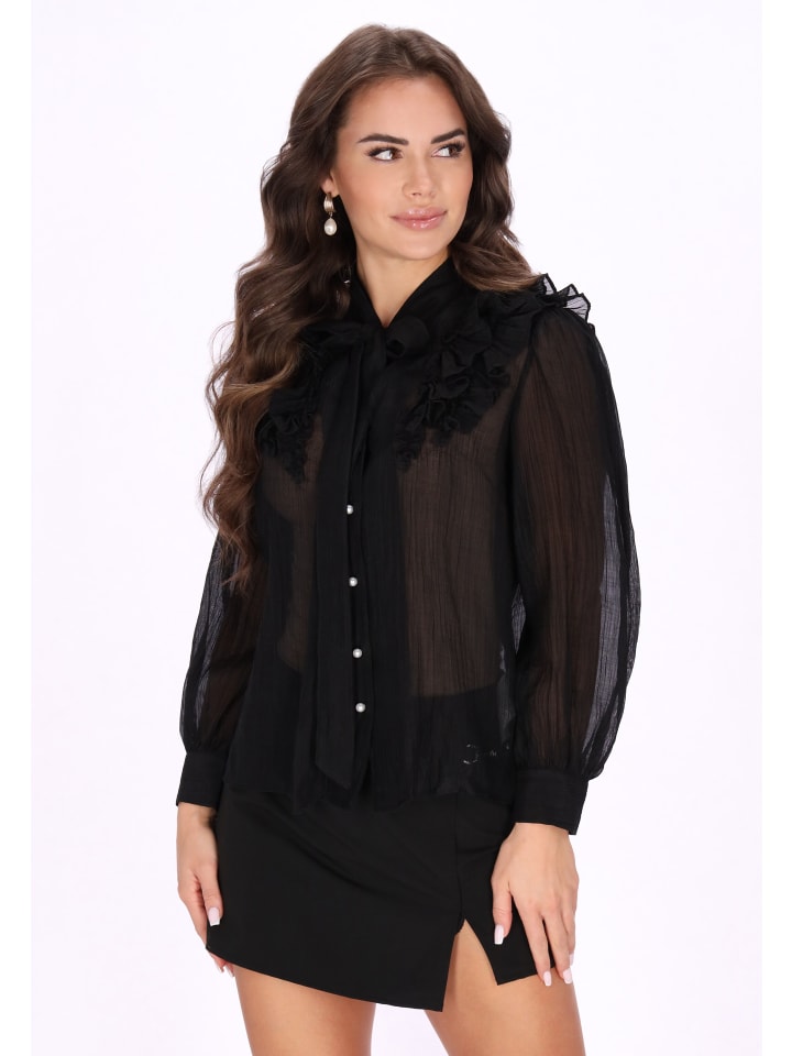 - Блузка свободного кроя с воротником-бантом и длинными рукавами