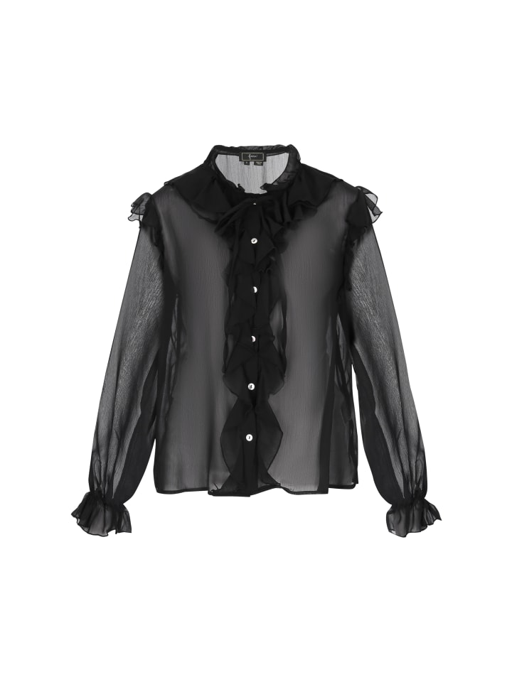Эта элегантная блузка из коллекции Faina - идеальное сочетание романтизма и легкости. Изготовленная из нежного, прозрачного шифона, она очаровывает легкими оборками и пышными рукавами-епископскими, которые придают ей неповторимый шарм. Свободный крой гарантирует комфорт, а круглый вырез и застежка на пуговицы подчеркивают классический характер модели. Идеально подходит для праздничных вечеринок, романтических ужинов или особых случаев, она хорошо сочетается как с брюками с высокой талией, так и с элегантной юбкой.