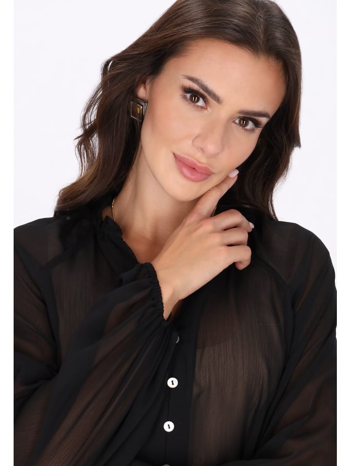 Эта романтичная блузка из коллекции Faina - сочетание утонченности и элегантности. Изготовленная из легкого, прозрачного шифона, она восхищает своим нежным блеском и женственным очарованием. Воротник с оборками и небольшим разрезом на вырезе добавляет неповторимый характер, а длинные пышные рукава-епископ с застежкой на пуговицы - нотку изысканности. Свободный крой обеспечивает комфорт и свободу движений, а гладкий узор делает блузку идеальной для романтических ужинов или особых случаев. Стильная, женственная и вневременная - идеальный выбор для ценителей утонченной элегантности.