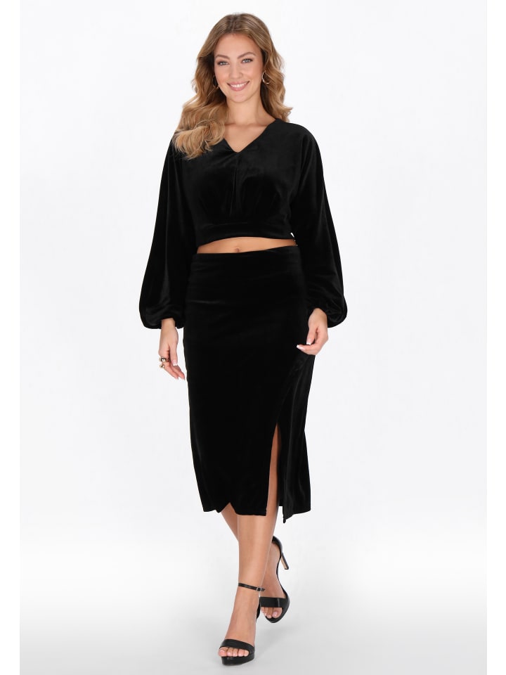 Эта элегантная и стильная блузка из коллекции Faina идеально подходит для праздничных и вечерних мероприятий. Свободный крой и укороченная длина деликатно подчеркивают талию, создавая женственный, современный силуэт. Блузка имеет V-образный вырез для дополнительной элегантности и длинные пышные рукава с эластичными манжетами для нежного, струящегося эффекта. Изготовленная из мягкого, роскошного бархата с гладким узором, она восхищает легким блеском и приятной на ощупь текстурой. Это идеальный выбор для женщин, которые ценят класс, комфорт и модный образ в одном изделии.