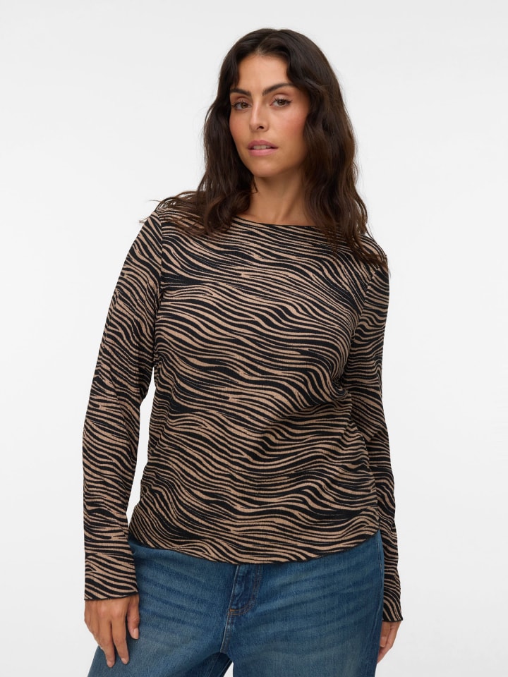 Базовые вещи - это основа гардероба. Наши базовые топы являются объединяющим элементом любого образа, и этот топ не исключение. Сочетайте его с рубашкой-курткой, удобными джинсами-«мом» и массивными ботинками для создания повседневного и стильного образа. Модели для пышных форм созданы для того, чтобы идеально подчеркивать достоинства фигур с изгибами. - Тип изделия: Блузка - Воротник: Круглый вырез - Рукав: Длинный рукав - Рукав: Объемный рукав - Принт: Принт повторяется по всей поверхности изделия - Посадка: Обычная - Блузка - Обычная посадка - Материал: - 97% полиэстер - 3% эластан