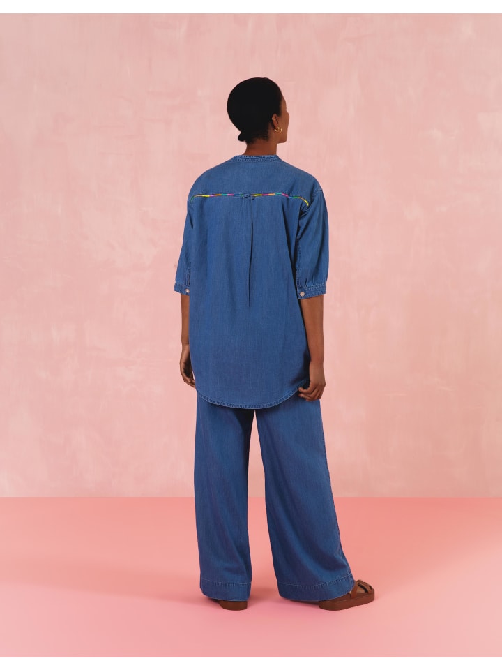 Эта туника светло-голубого цвета украшена металлическими пуговицами Oilily и разноцветной вышивкой. Открытый V-образный вырез и игривый карман идеально дополняют образ. - 100% хлопок - Сделано в Индии - Рост модели 178 см/5'9", размер 36